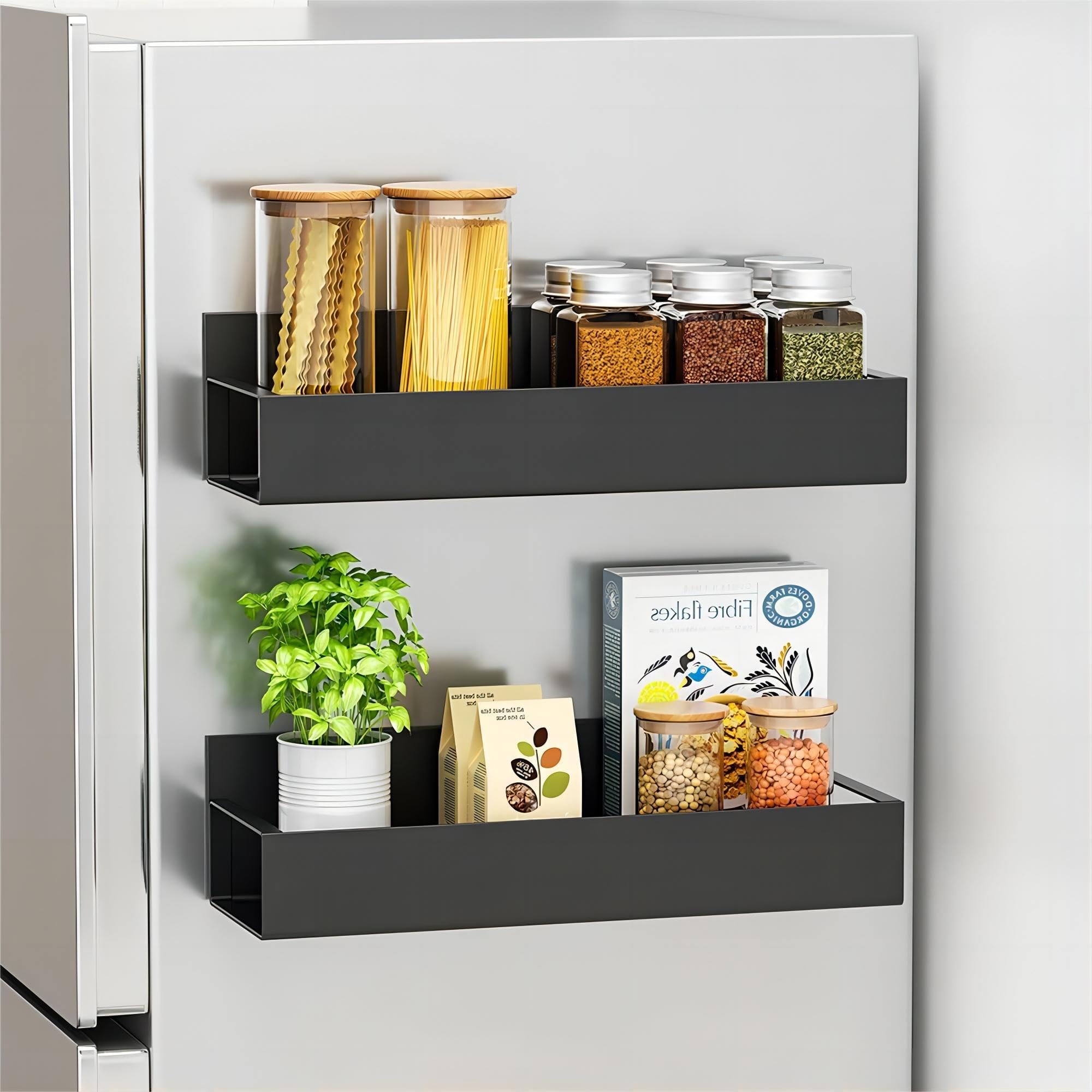 Schluss mit Chaos in der Küche! Dieses magnetische Regal haftet superfest an deinem Kühlschrank oder anderen metallischen Flächen – ganz ohne Bohren oder Kleben. Mit den Maßen 26 x 12 cm und 7,5 cm hohen Seitenrändern bietet es genug Platz für Gewürzdosen, Ölflaschen, Küchenrollen oder auch Stifte und Notizzettel. Die starken Neodym-Magnete sorgen dafür, dass alles sicher hält, auch wenn das Regal voll beladen ist. Aus robustem Eisen mit schwarzer Pulverbeschichtung, ist es kratzfest, rostfrei und super pflegeleicht. Einfach anbringen und sofort nutzen! Perfekt auch für Bad, Garage oder Büro. Endlich alles griffbereit und ordentlich – ohne Aufwand und ohne Löcher in der Wand.