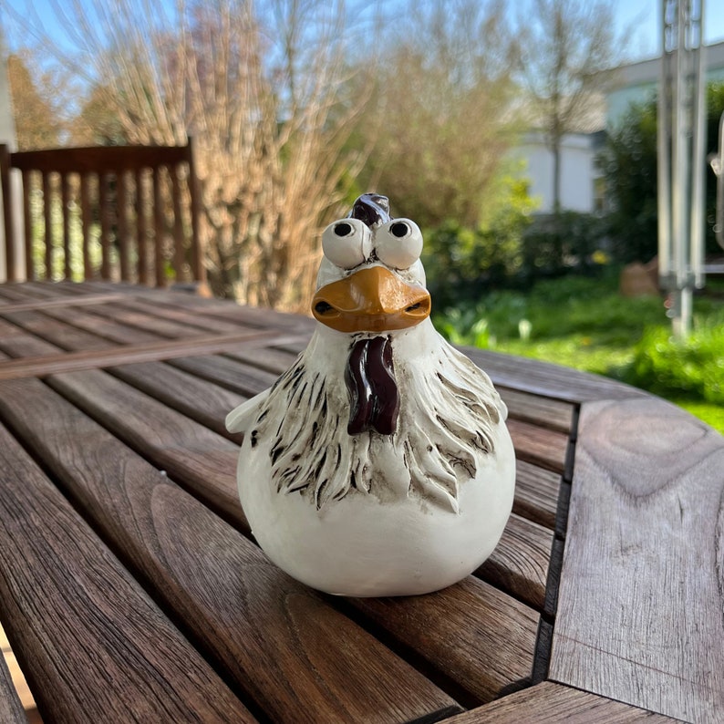 Bring Leben in deinen Garten mit dieser entzückenden Hühnerfamilie! Das 12-teilige Set von Cldaisy besteht aus wunderschön gearbeiteten weißen Miniatur-Figuren - Hennen, Küken und Eiern in verschiedenen natürlichen Posen. Perfekt für Garten, Terrasse, Rasen oder Blumenbeete, verbreiten diese Skulpturen ländlichen Charme pur. Die detailreichen Figuren fangen die Essenz des Bauernlebens ein und schaffen eine gemütliche Atmosphäre. Aus wetterbeständigem Material gefertigt, halten die Statuen auch im Freien problemlos stand. Arrangiere sie zusammen für eine lebendige Szene oder verteile sie einzeln im ganzen Garten - deiner Kreativität sind keine Grenzen gesetzt. Auch für die Innendekoration geeignet, zum Beispiel auf dem Fensterbrett oder im Regal. Ein wunderbares Geschenk für Gartenliebhaber oder alle, die das Landleben lieben. Diese niedliche Hühnerschar macht jeden Garten zum Blickfang!