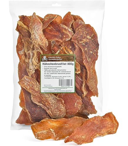 Dein Hund wird verrückt nach diesen Leckerlis sein! Die Carnifood Hühnerbrustfilet-Streifen sind zu 100% naturbelassen und super proteinreich - perfekt für aktive Hunde. Mit 92,5% Hühnerbrust und ohne künstliche Zusätze weißt du genau, was dein Liebling da frisst. Besonders gut für Hunde mit empfindlichem Magen, da die Streifen leicht verdaulich und fettarm sind. Ideal als Trainingsbelohnung oder einfach als Snack zwischendurch. Die praktischen 2x500g Beutel sind wiederverschließbar und halten die Leckerlis lange frisch. Analytische Zusammensetzung: 52% Rohprotein, nur 2,5% Rohfett - also wirklich gesund! Beim Kauen helfen die Streifen sogar, Zahnbelag zu reduzieren. Im Sommer kannst du sie auch gefroren geben - eine super Abkühlung an heißen Tagen. Als Ergänzungsfuttermittel zusätzlich zur normalen Mahlzeit geben. Achte nur darauf, dass dein Hund immer frisches Wasser zur Verfügung hat. Diese Leckerlis sind einfach der Hit - gesund, lecker und dein Hund wird dich lieben!