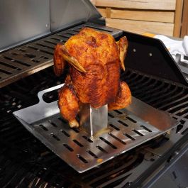 So wird Hühnchen braten zum Erlebnis! Dieser Edelstahl-Hühnerständer lässt dein Huhn auf einer Bierdose (oder jeder anderen 340 ml Dose) garen - das Ergebnis? Knusprig außen, saftig innen! Aus poliertem Edelstahl #304 (Lebensmittelqualität) - super stabil und hält Hühnchen bis 2,3 kg. Einfach zu benutzen: Dose in den Rahmen, mariniertes Huhn drüber stülpen und auf den Grill oder in den Ofen. Indirekt garen nicht vergessen! Das Bier (oder Saft etc.) verdampft und gibt dem Fleisch ein tolles Aroma - jedes Getränk gibt eine andere Note! Perfekt auch für kleine Truthähne, Enten oder Gänse. Für Holzkohle- und Gasgrills geeignet, aber auch für den Backofen. Hitze bis 300°C ist kein Problem. Nach Gebrauch einfach in Spülmaschine oder per Hand reinigen. Mit 1 Jahr Ersatzservice! Maße: 19x19x6 cm. Deine Gäste werden begeistert sein - so saftig war Huhn noch nie!