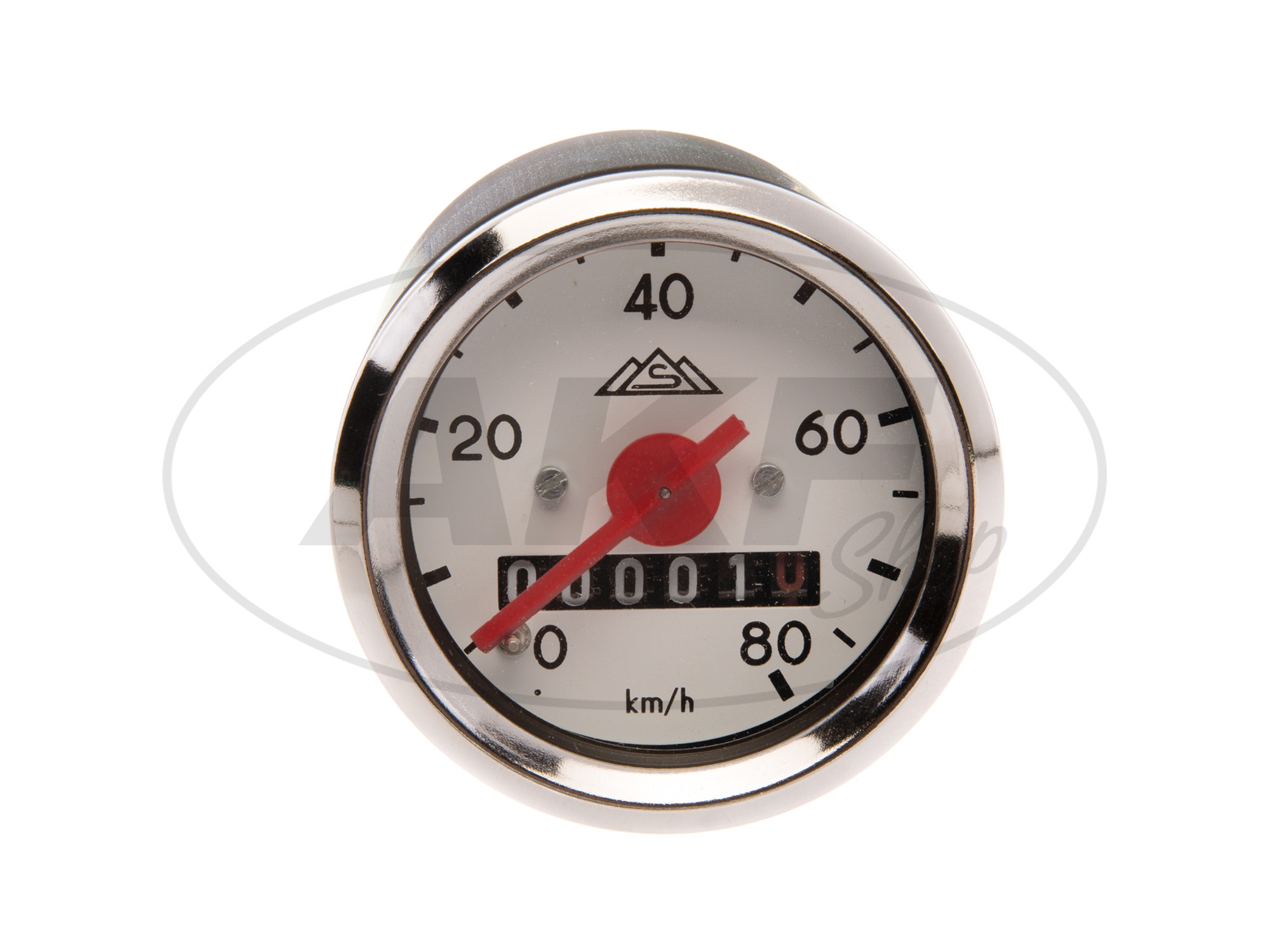 Für alle, die es klassisch mögen: Dieser MMB Tachometer ist ein echtes Arbeitstier! Mit der 120km/h Skala in eleganter weißer Ausführung und der roten Nadel siehst du immer auf den ersten Blick, was Sache ist. Das schwarze Display mit dem Suhler Berge Logo gibt dem ganzen eine persönliche Note. Wichtig: Das ist ein elektromechanisches Modell, das mit der Tachowelle betrieben wird - keine Blinkkontrolle, aber mit Standlichthalter (ohne Leuchtmittel). Der Gehäusedurchmesser beträgt 48mm und passt damit in die meisten Armaturenbretter. Perfekt für Oldtimer, Motorräder oder andere Fahrzeuge, bei denen es auf zuverlässige, klassische Technik ankommt. Die Verarbeitung ist typisch deutsch: solide und langlebig. Einfach einbauen und jahrelang Freude daran haben - ohne Schnickschnack, aber mit allem, was wirklich wichtig ist. Einfach klasse für alle, die Wert auf traditionelle Fahrzeugtechnik legen!