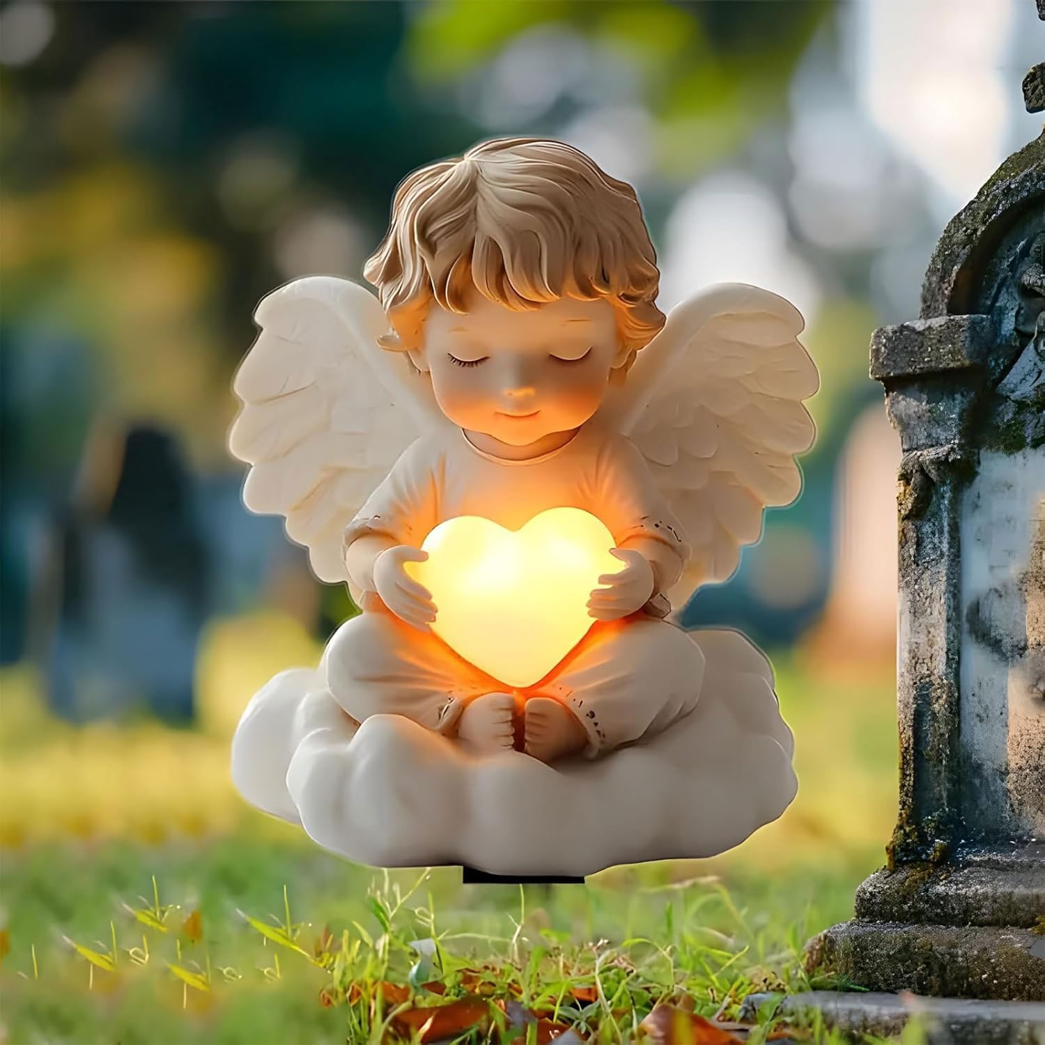 • Engels-Gartenstecker Mit Herz - Berührende Gedenkdekoration Für Garten Und Grab