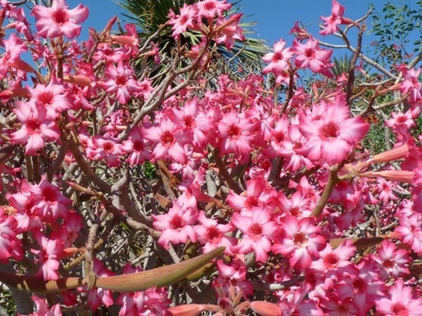 Die Wüstenrose (Adenium obesum) ist wirklich eine besondere Pflanze! Mit ihren leuchtend bunten Blüten und den dunkelgrünen, glänzenden Blättern wird sie zum absoluten Hingucker in deinem Garten oder auf dem Balkon. Das Besondere: Sie ist winterhart und mehrjährig - pflanzt du sie einmal ein, kommt sie Jahr für Jahr wieder und erfreut dich mit ihrer exotischen Schönheit. Die Wurzeln bilden interessante, bonsai-artige Verdickungen aus, die der Pflanze zusätzlichen Charakter verleihen. Extrem pflegeleicht und anspruchslos - sie verträgt Trockenheit und stellt kaum Ansprüche an den Boden. Perfekt auch für Garten-Anfänger! Im Set erhältst du 2 gesunde, kräftige Zwiebeln mit guter Anwuchsrate. Ob im Beet, Kübel oder als besonderes Geschenk für Pflanzenliebhaber - diese Wüstenrose bringt tropisches Flair in deine grüne Oase.