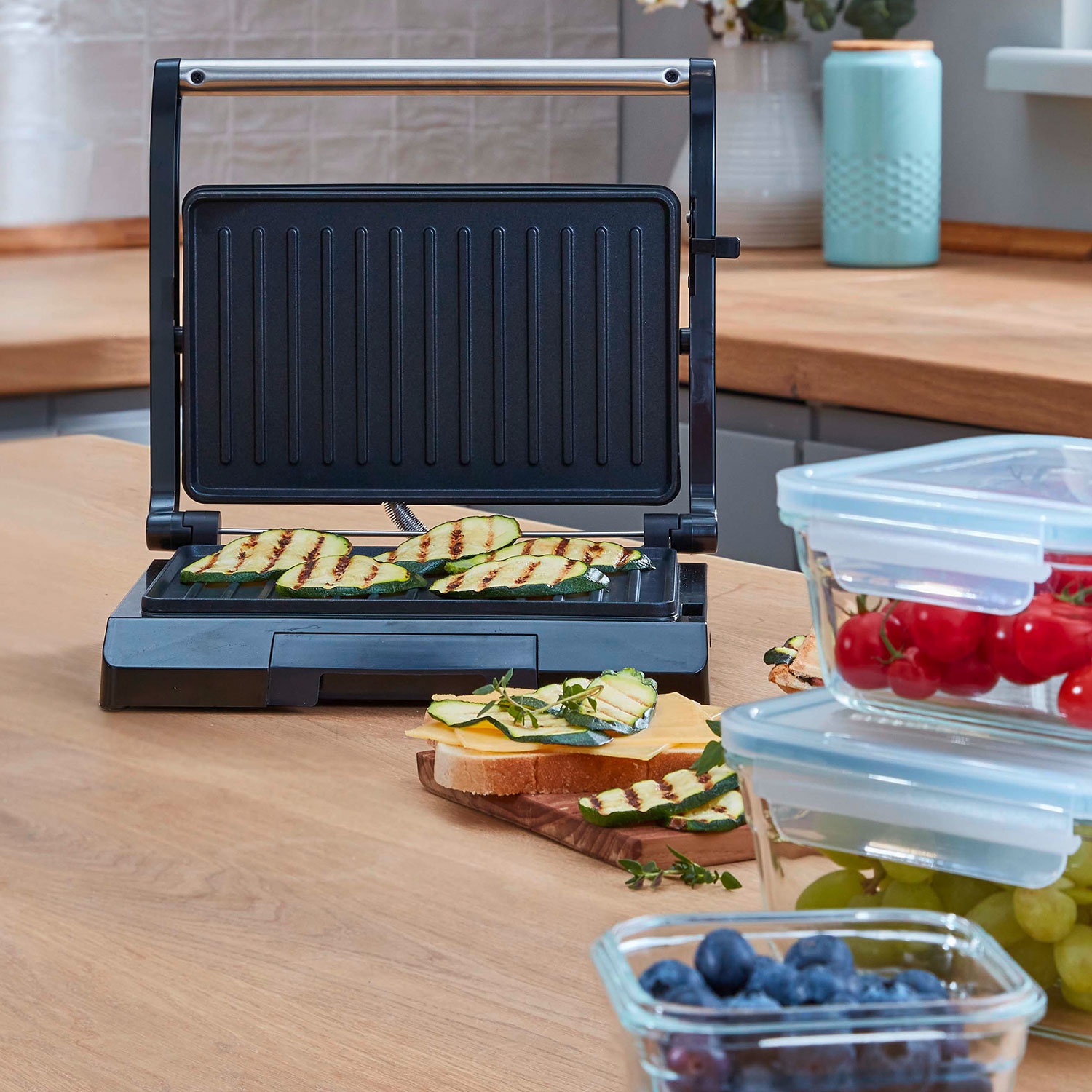 Der Alleskönner für deine Küche! Mit 650 Watt Leistung brät dieser Sandwichmaker nicht nur perfekte Paninis, sondern grillt auch Burger, Steaks und macht sogar Waffeln. Die Antihaft-Beschichtung sorgt für leichtes Reinigen - einfach mit einem feuchten Tuch abwischen. Der schwebende Deckel passt sich jeder Dicke an, sodass Sandwiches gleichmäßig durchgebraten werden. Besonders praktisch: Die platzsparende Stehfunktion! Nach Gebrauch einfach aufstellen und wegräumen. Maße: 21,5x15,3x10,5 cm - kompakt genug für kleine Küchen. Ob fürs schnelle Frühstück oder gemütliche Abendessen - hier kriegst du knusprige Ergebnisse ohne Aufwand!