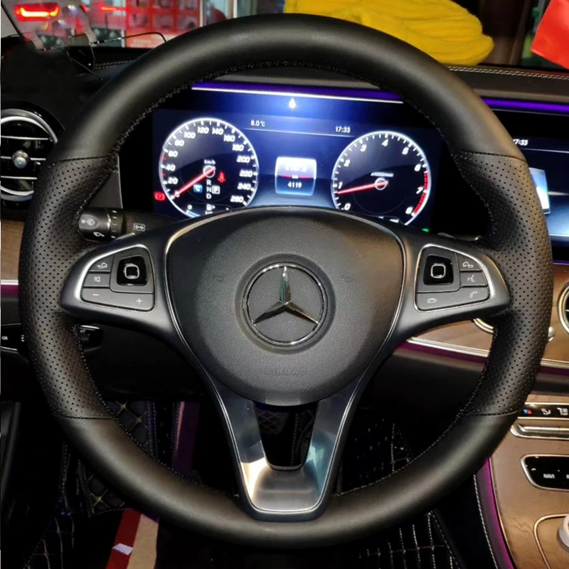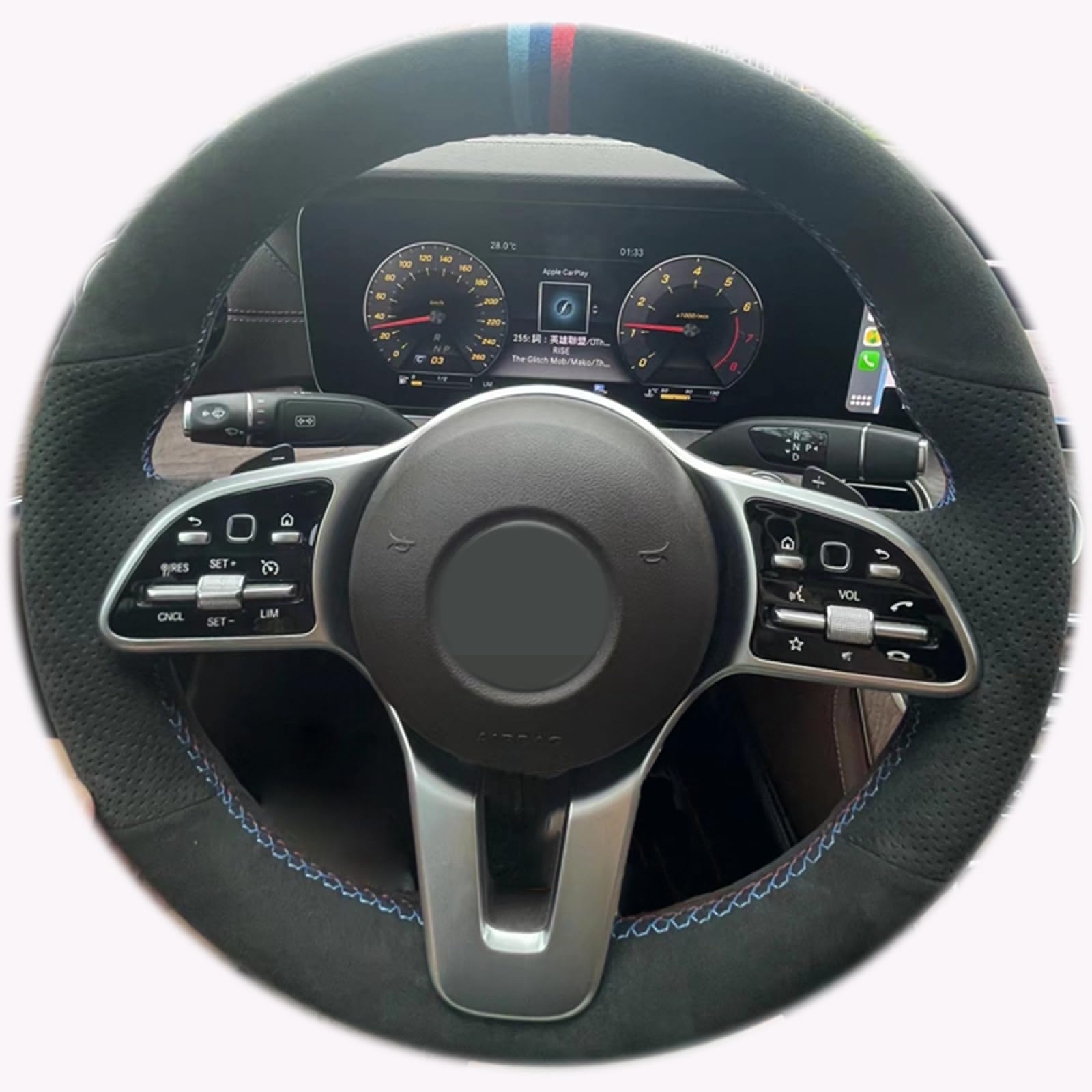 Pimp your Mercedes! Dieser handgenähte Lenkradbezug aus echtem Leder macht dein Fahrzeug-Innenleben sofort viel hochwertiger. Perfekt passend für Mercedes Modelle wie W176, W246, W205, C117 und viele mehr. Das weiche Leder fühlt sich nicht nur super an, es ist auch schweißabsorbierend und rutschfest - ideal für lange Fahrten oder bei heißem Wetter. Und dein Original-Lenkrad ist bestens geschützt vor Kratzern und Abnutzung. Das Nähen macht sogar Spaß - alles ist im Set enthalten, was du brauchst. Einfach über das bestehende Lenkrad ziehen und nach Anleitung nähen. Das Ergebnis? Sieht aus wie vom Profi gemacht! Verschiedene Farbkombinationen verfügbar - such dir deinen Favoriten aus. Pflegeleicht, langlebig und ein echter Hingucker. Deine Hände werden's dir danken!