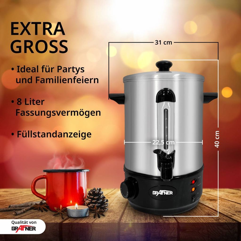 Boah, wenn's draußen kalt wird, ist dieser Glühweinkocher von Ansobea dein bester Freund! Mit stolzen 10 Litern Fassungsvermögen kannst du ne ganze Party mit leckerem Glühwein versorgen. Aus hochwertigem Edelstahl - da bleibt kein Geschmack hängen und er ist super pflegeleicht. Die 1800 Watt Power bringen alles schnell auf Temperatur, und mit dem Thermostat stellst du genau ein, wie heiß es sein soll - von 30 bis 110°C alles möglich. Mit Zapfhahn und Wasserstandsanzeiger total praktisch. Nicht nur für Glühwein super, sondern auch für Punsch, Tee, Kaffee oder sogar Suppe! Perfekt für Weihnachtsmärkte, Familienfeiern oder gemütliche Abende mit Freunden. Der verriegelbare Deckel macht's sicher und einfach. Mach deine Winter-Partys unvergesslich mit diesem Profi-Kocher!