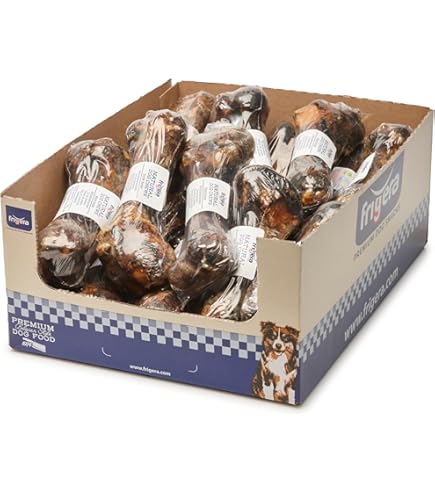 Mit 84,6% Proteingehalt und komplett getreidefrei ist der Knochen ideal für ernährungssensible Hunde. Die 13,5cm Länge und 70g Gewicht pro Stück sind perfekt für die tägliche Zahnpflege.