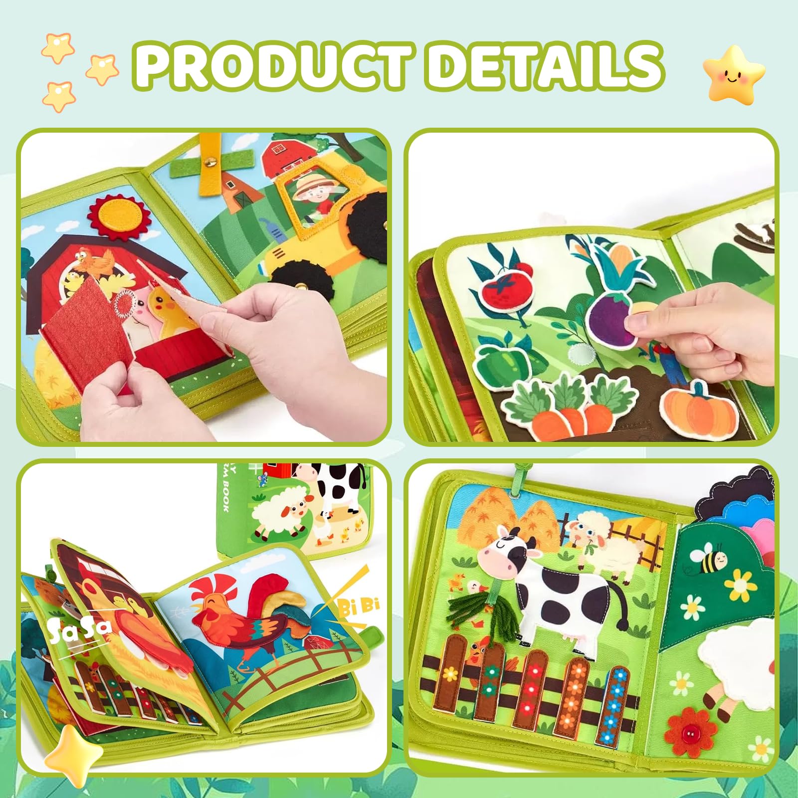 Mamas und Papas, dieses Montessori Farm Buch ist der Hit für die Kleinen! Mit 20 verschiedenen Aktivitäten rund um den Bauernhof - da lernen Kinder spielerisch Knöpfe schließen, Klettverschlüsse bedienen, Schnürsenkel binden und vieles mehr. Aus weichem, ungiftigem Filz mit Doppelnaht für extra Langlebigkeit. Fördert Feinmotorik, Hand-Auge-Koordination und Kreativität. Mit praktischem Tragegriff, perfekt für unterwegs im Auto, Zug oder Flugzeug. Die bunten Seiten mit 3D-Szenen begeistern Kinder stundenlang. Ein pädagogisch wertvolles Geschenk für Kinder von 1-4 Jahren, das Spaß macht und gleichzeitig fördert!