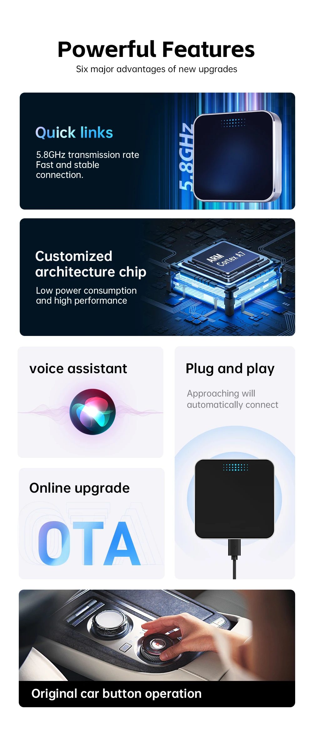 • Wireless 2-in-1 CarPlay & Android Auto Adapter - 5GHz WiFi, Plug & Play, Für IPhone IOS 10+ & Android 11+