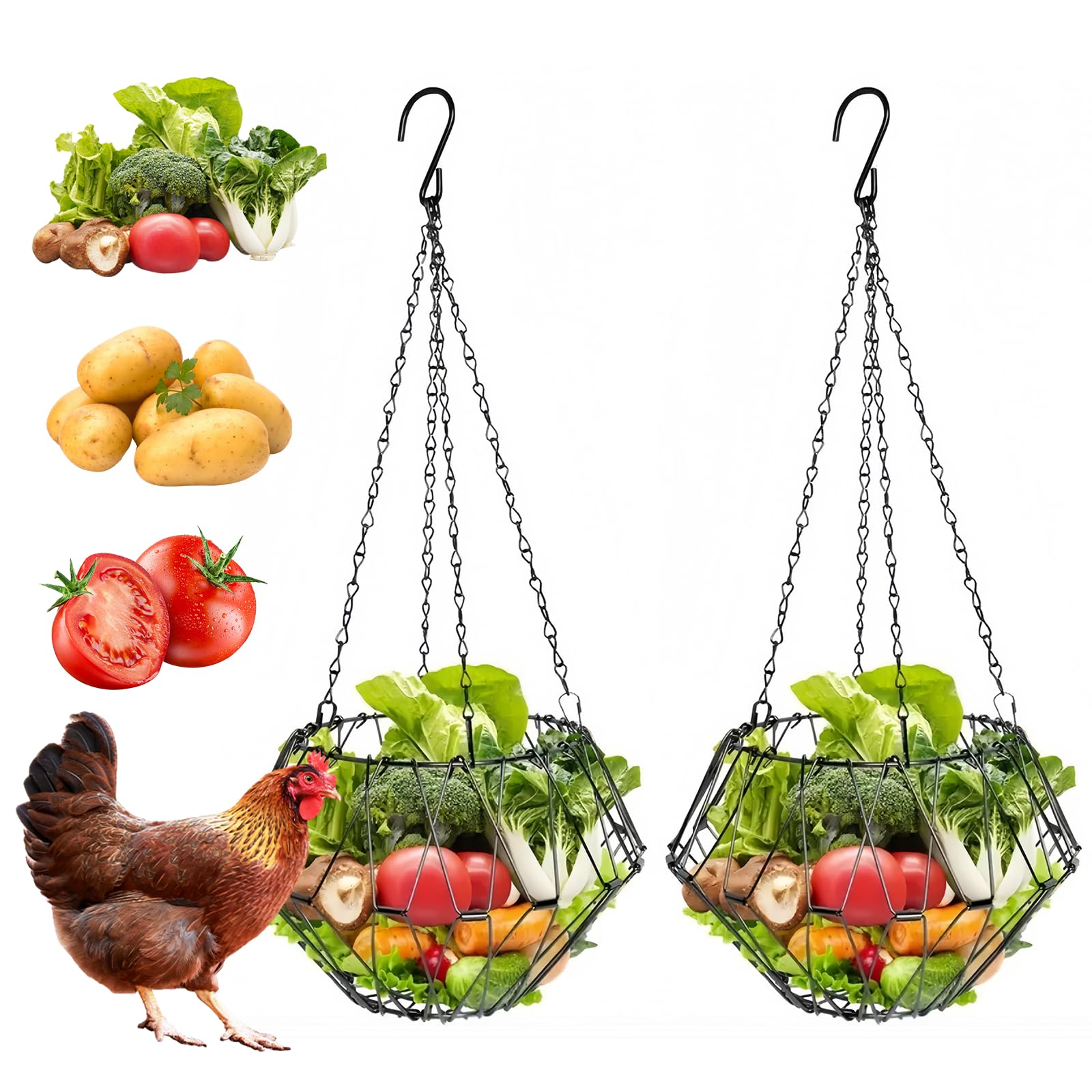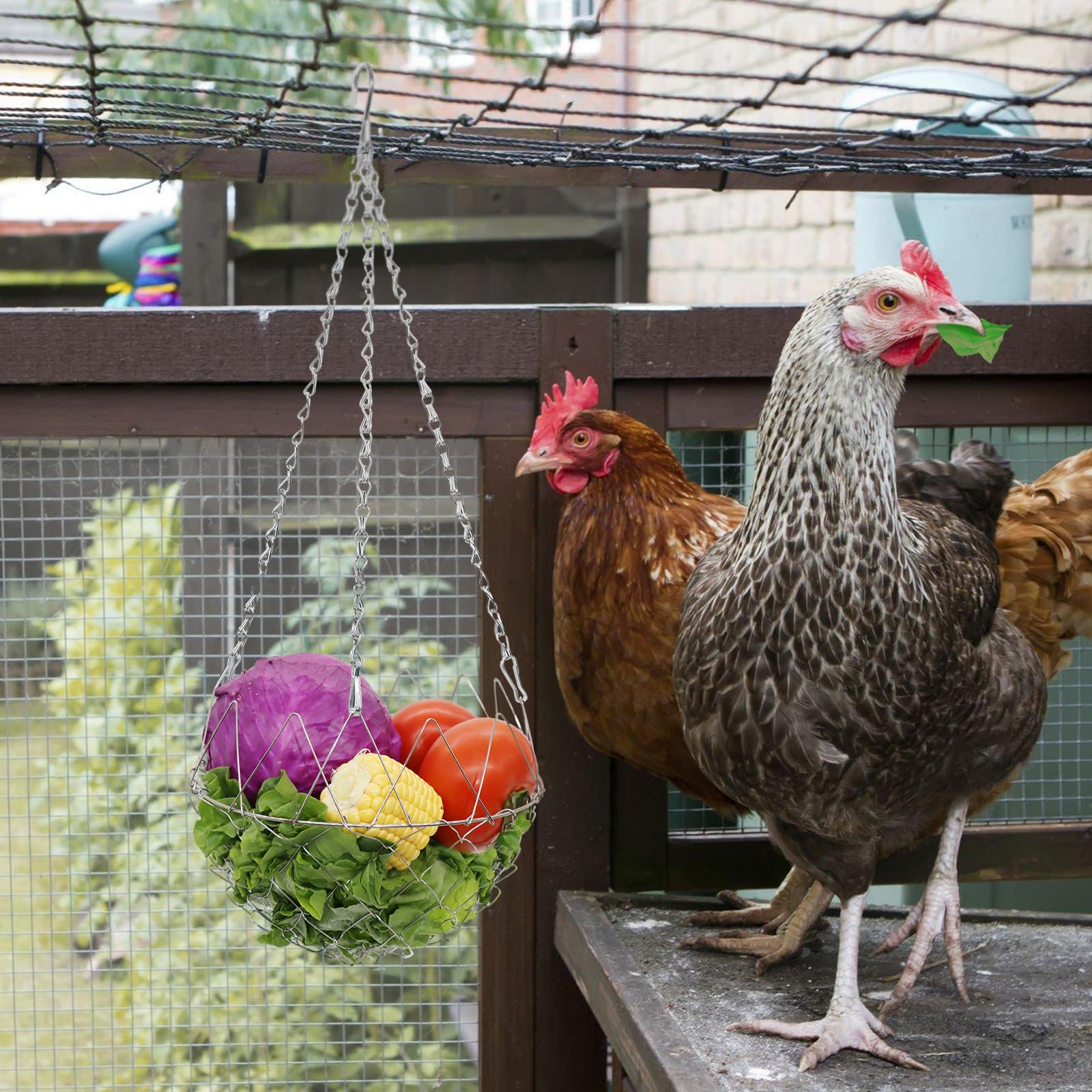 Deine Hühner werden verrückt nach diesem cleveren Futterautomaten sein! Das 2-in-1 Set besteht aus einem robusten Polypropylen-Netz und einem Edelstahl-Spießrost mit Kette - perfekt zum Aufhängen von Obst, Gemüse und Leckereien. Das hängende Design verhindert, dass das Futter verschmutzt oder zertrampelt wird und regt gleichzeitig das natürliche Picken der Hühner an. Super für die Beschäftigung und Stressreduzierung! Der Edelstahl ist rostbeständig und damit ideal für den Außenbereich geeignet. Einfach zu befüllen und zu reinigen - das Netz einfach aufhängen, den Spieß befüllen und schon haben deine Hühner ihren Spaß. Geeignet für Hühner, Enten, Gänse und Ziervögel aller Art. Perfekt für Hühnerställe, Gärten und kleine Höfe. Macht die Fütterung zur unterhaltsamen Aktivität und verbessert gleichzeitig die Stallhygiene. Deine Tiere werden's dir danken!