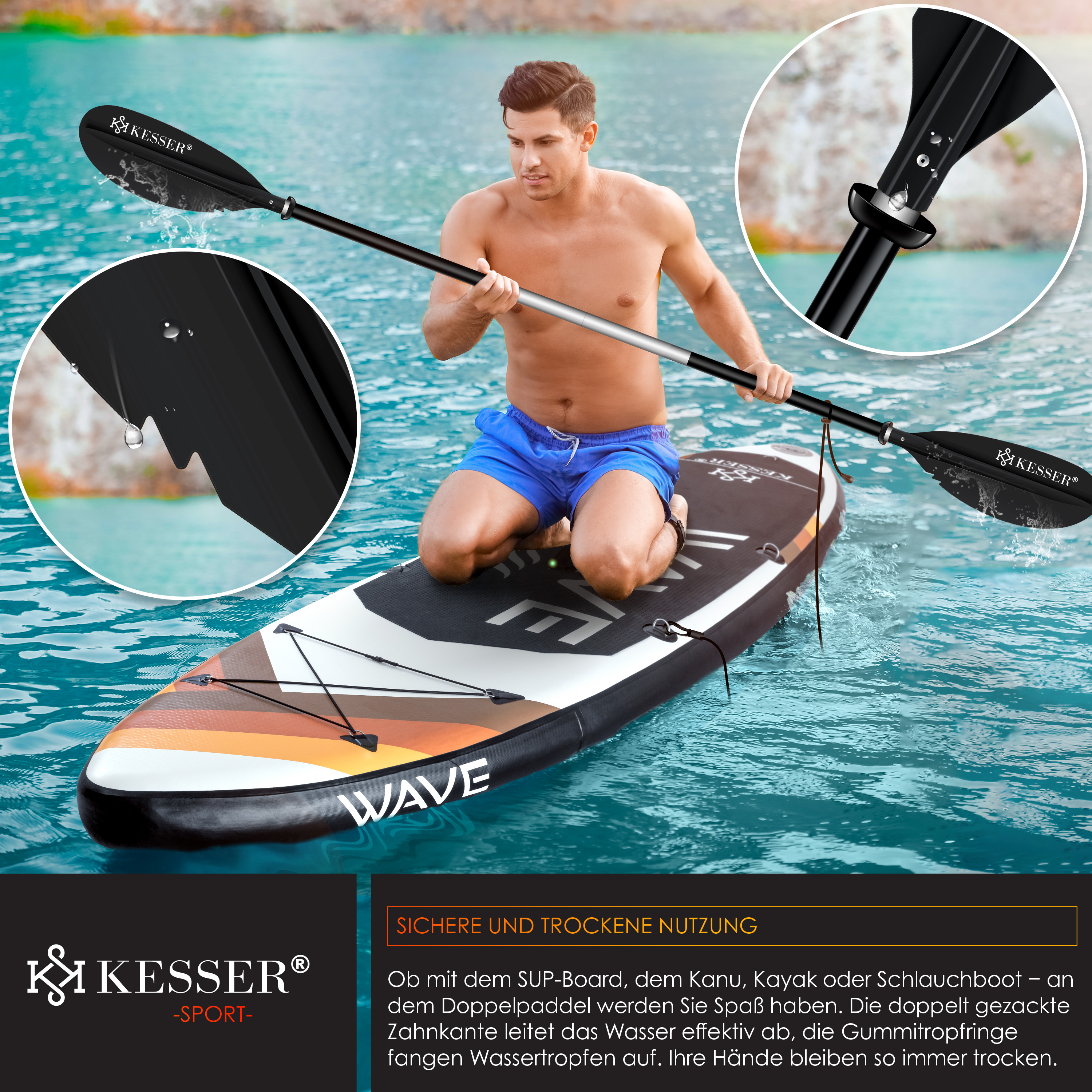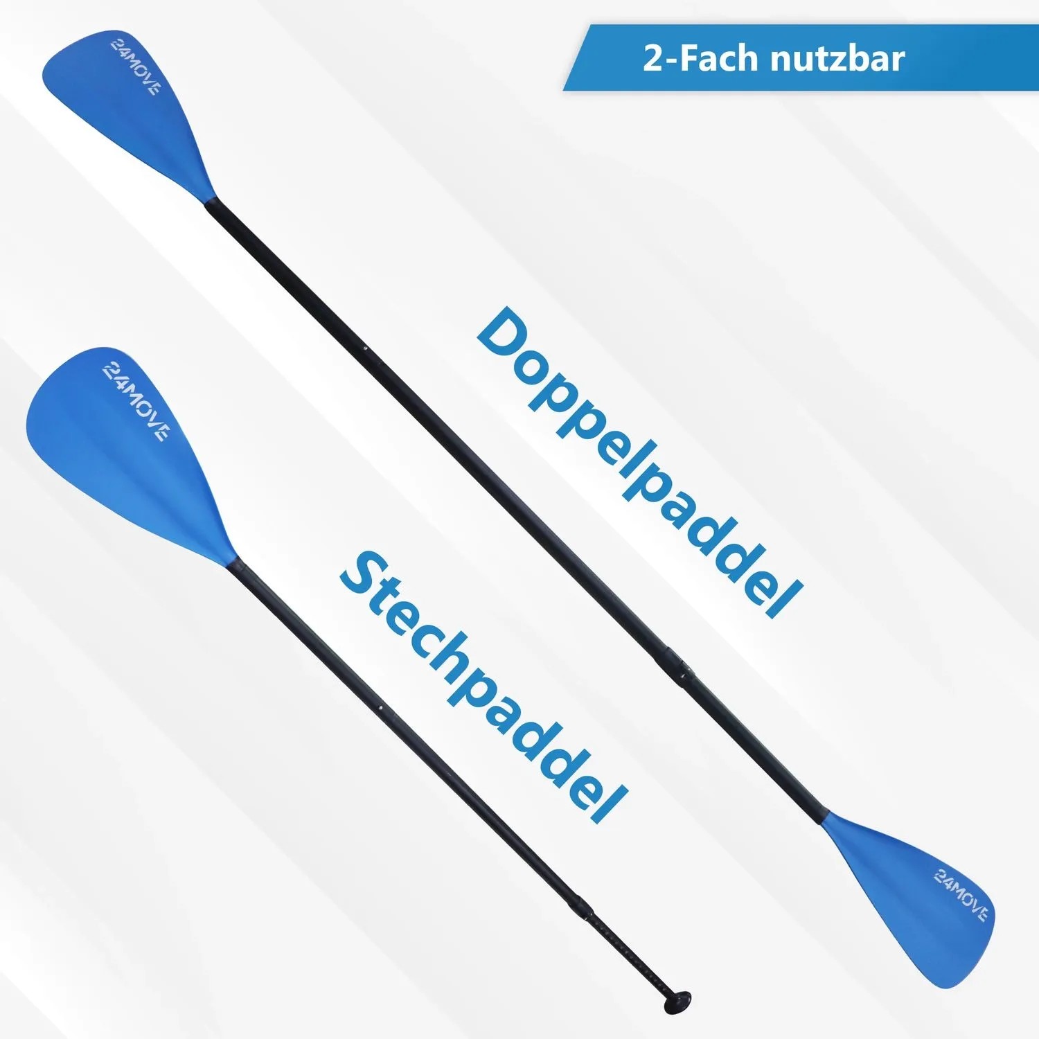 Paddel-Spaß für die ganze Familie! Dieses 2-in-1-Paddel ist super praktisch: Einzelne Paddel sind 126 cm lang, zusammengebaut als Doppelpaddel satte 212 cm! Aus Aluminiumlegierung und Kunststoff gebaut, wiegt das ganze Ding nur 724 Gramm - also richtig leicht zu handhaben. Die Montage ist simpel: Einfach zusammenschrauben und schon kann's losgehen! Die Paddelblätter sind extra stabil und dick, geben dir ordentlich Schub und schwimmen sogar, wenn sie mal ins Wasser fallen. Perfekt für SUP, Kajak, Schlauchboot oder andere Wassersport-Aktivitäten. Das tolle: Durch die abnehmbare Konstruktion ist es platzsparend zu verstauen und super transportabel. Egal ob du Anfänger oder Profi bist - mit diesem Paddel machst du eine gute Figur auf dem Wasser! Ideal für den nächsten See- oder Flussausflug mit Freunden oder Familie.