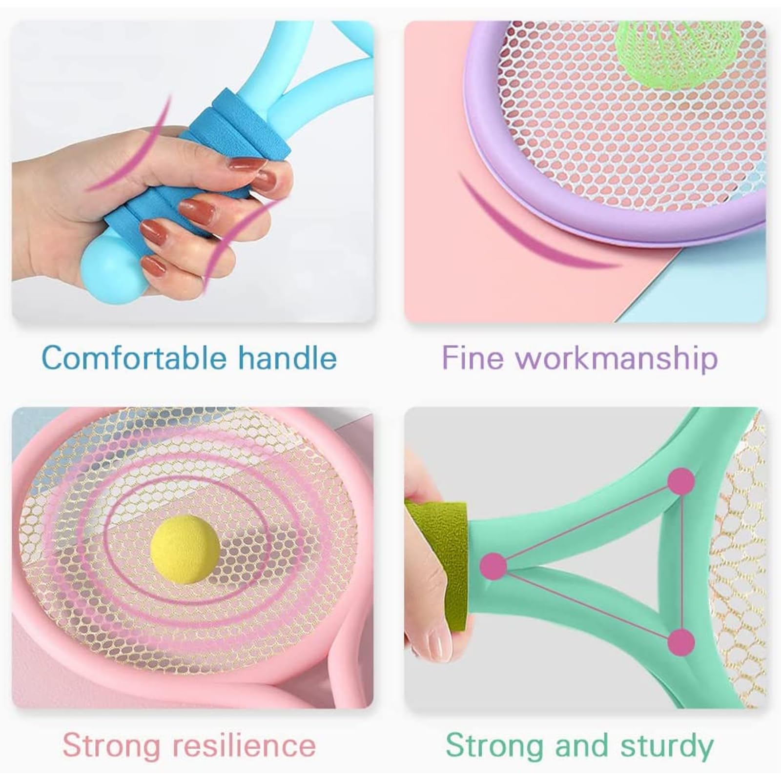 Tennis und Badminton in einem Set - perfekt für die Kleinen! Dieses 2-in-1 Set enthält 2 bunte Schläger (39cm, orange/grün), 1 weichen Ball und 1 Federball. Speziell für Kinder ab 3 Jahren entwickelt, fördert es spielerisch die Hand-Augen-Koordination. Die Schläger aus robustem Kunststoff haben umwickelte Schwammgriffe für sicheren Halt. Ideal für den Garten, Park oder Strand - deine Kids werden stundenlang Spaß haben! Ob alleine oder mit Freunden, hier kann nach Herzenslust geschlagen und getroffen werden. Das Set weckt sportliches Interesse und trainiert ganz nebenbei Reaktion und Konzentration. Einfach auspacken und losspielen - der perfekte Einstieg in die Welt des Racketsports!