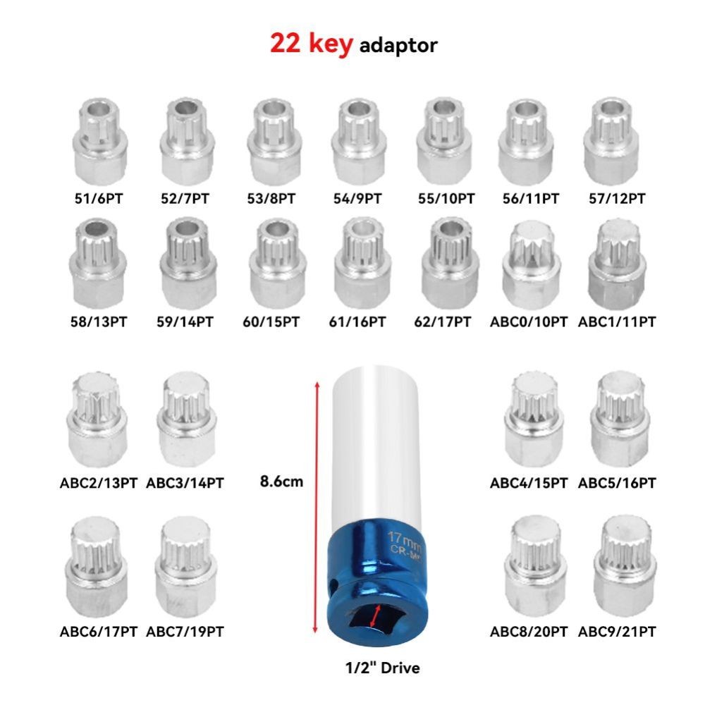 Schluss mit festgerosteten Felgenschlössern! Dieses 10-teilige ENVA Demontage-Set macht dich zum Profi in der Felgenrettung. Mit 8 konischen Demontagehülsen (18,3-25,5 mm), 2 Schlagdornen und Schleifpapier bist du für nahezu jedes Felgenschloss gewappnet. Die Hülsen sind 60 mm lang und aus hochwertigem S45C/SCM440 Material - extrem stabil und langlebig. Einfach die passende Hülse über das Schloss stülpen, mit dem Schlagdorn bearbeiten und schon löst sich das störrische Teil. Ohne deine Felgen zu beschädigen! Alles sicher verstaut im praktischen Kunststoffkoffer. Perfekt für Werkstätten und Heimwerker. Nie wieder Ärger mit verlorenen Felgenschlüsseln!
