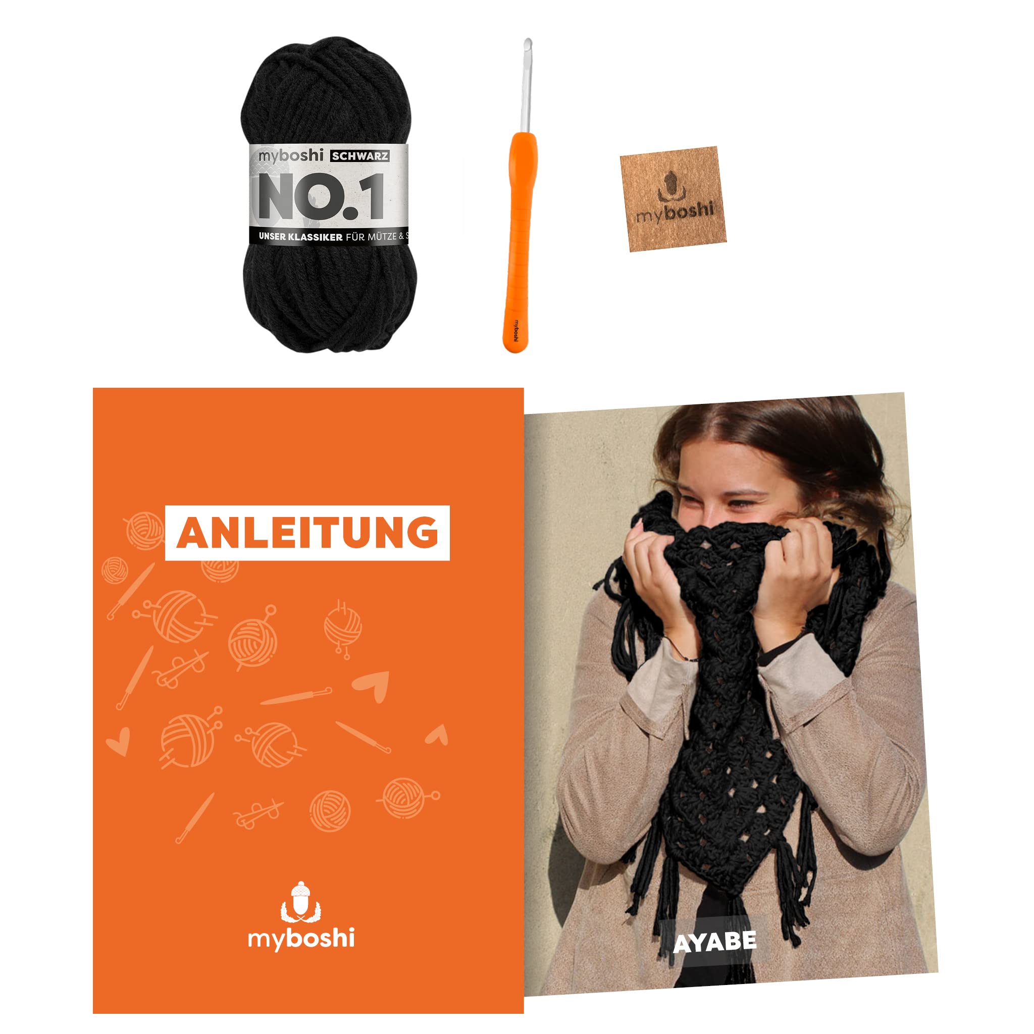 Häkeln macht Spaß - besonders mit diesem Rundum-sorglos-Set von myboshi! Alles was du brauchst, ist in einer Box: 7 Knäuel feine No.2-Wolle, eine ergonomische Häkelnadel, eine verständliche Anleitung und sogar ein myboshi-Label für dein fertiges Werk.