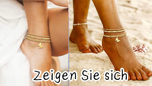 Die Ketten sind verstellbar: 20 cm Grundlänge plus 7 cm Verlängerung - passt an die meisten Fußgelenke. Der Verschluss ist einfach zu bedienen, alles sitzt sicher.