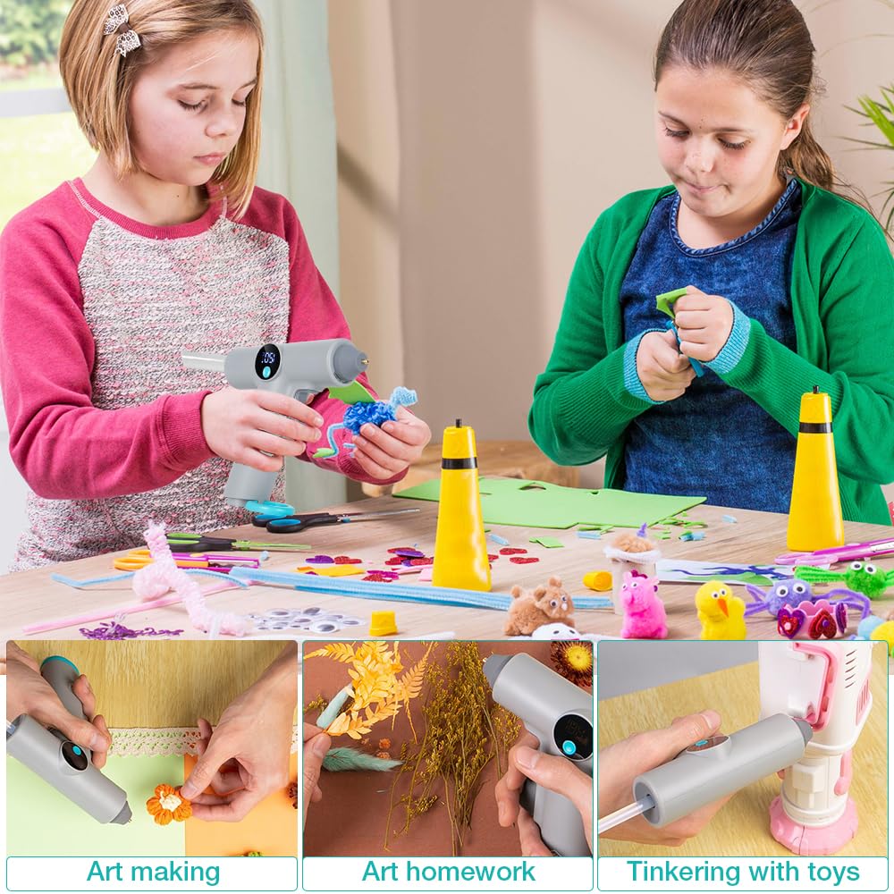 Total flexibel kleben - ganz ohne Kabel! Diese Heißklebepistole mit 2500mAh Akku läuft bis zu 90 Minuten. Schnelles Aufheizen in nur 40 Sekunden auf 170°C. Mit LCD-Temperaturanzeige und 8 Lichtmodi. USB-C Schnellladung in 1,5-2 Stunden. Automatischer Klebevorschub und Anti-Tropf-Funktion. Perfekt für DIY, Handwerk, Reparaturen oder Dekoration. Inklusive 22 Klebestiften und Ladekabel - sofort startbereit. Sicher mit Auto-Off nach 150 Sekunden Inaktivität. Leicht (170g) und handlich - ideal auch für Kinder. Macht jedes Bastelprojekt einfach und mobil. Endlich kein Kabelsalat mehr beim Kleben!