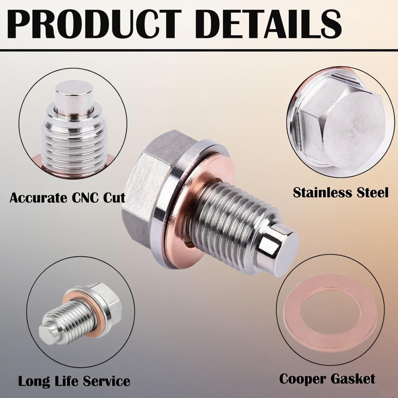 Die Schraube passt perfekt für Gewinde M14x1.5 und ist damit universell einsetzbar - ob im Auto, Boot oder Motorrad. Einfach die alte Schraube raus, diese rein - ohne Spezialwerkzeug oder Mechaniker-Kenntnisse. Inklusive passenden Kupferdichtungen für absolute Dichtheit.