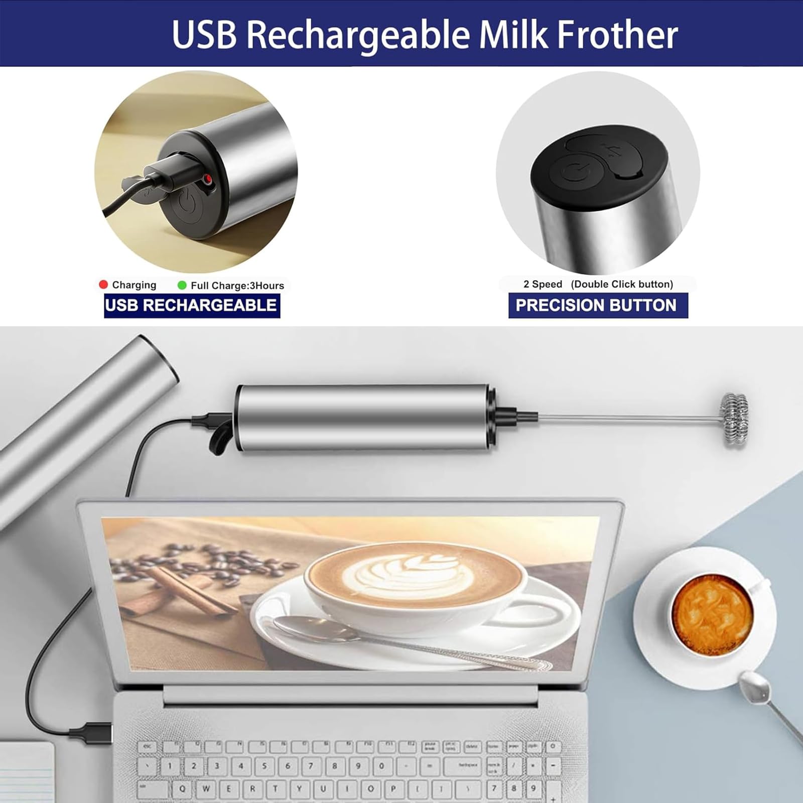 Elektrischer Milchaufschäumer USB-ladbar - 2 Geschwindigkeiten, 3 Aufsätze