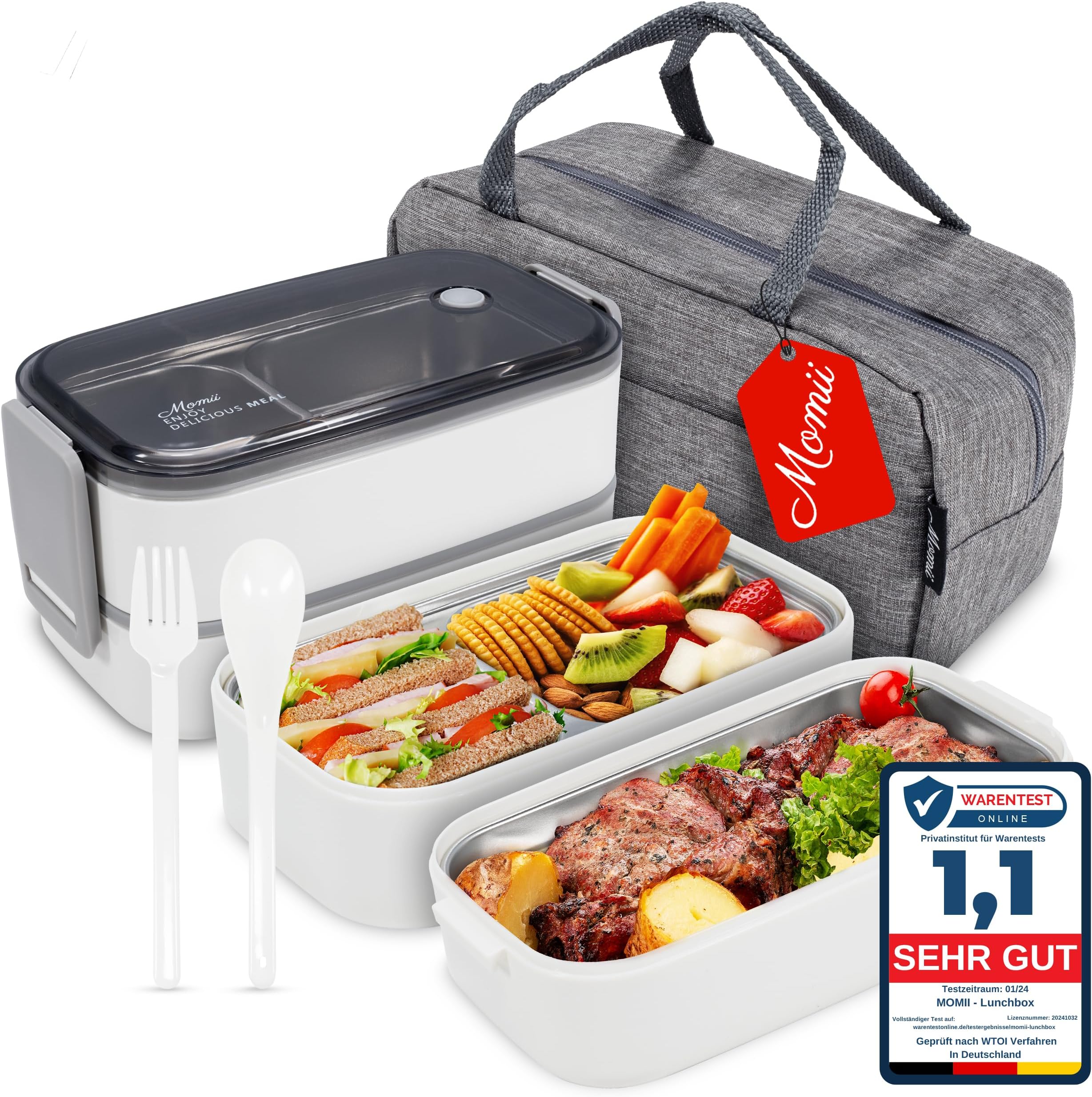 Perfekte Brotdose für unterwegs! Mit 1400ml Gesamtvolumen - 900ml und 500ml Fächer, ideal zum Trennen von Mahlzeiten. Auslaufsicher mit Silikondichtung - nichts läuft aus in der Tasche. Aus lebensmittelechtem PP, BPA-frei, mikrowellengeeignet. Inklusive Gabel und Löffel - immer griffbereit. Mit praktischem Tragegurt, leicht zu transportieren. Spülmaschinenfest - einfach zu reinigen. Ideal für Büro, Schule, Picknick oder Camping. Graues, modernes Design - sieht schick aus. Macht Meal Prep einfach und hilft Plastikmüll zu reduzieren. Einfach befüllen, zuklicken und los - dein Essen bleibt frisch und sicher. Einfach bestellen und sorgenfrei unterwegs essen!
