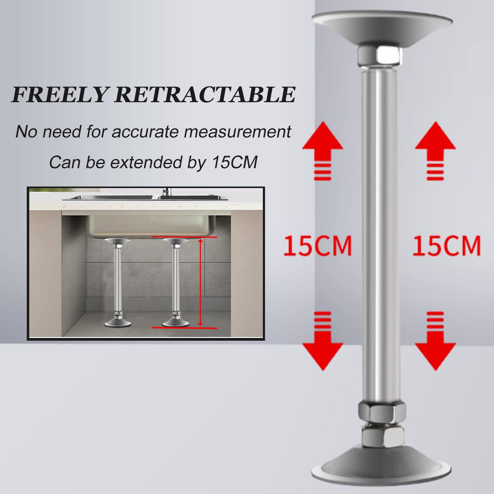 Endlich Schluss mit wackeligen Spülbecken! Dieses praktische Halterungs-Set aus robustem Edelstahl gibt deiner Unterbauspüle den nötigen Halt. Mit 8 verstellbaren Höhen von 16-68cm passt es für fast jedes Spülbecken in Küche oder Bad. Die Stützen tragen bis zu 150kg - selbst wassergefüllte Becken sind kein Problem. Rutschfeste Gummipolster sorgen für sicheren Stand, und die kratzfeste Schwammpolsterung schont dein Spülbecken. Das Beste: Kein Werkzeug nötig! Einfach die Höhe einstellen, festdrehen - fertig. Perfekt für Renovierungen oder wenn deine Spüle mehr Stabilität braucht.