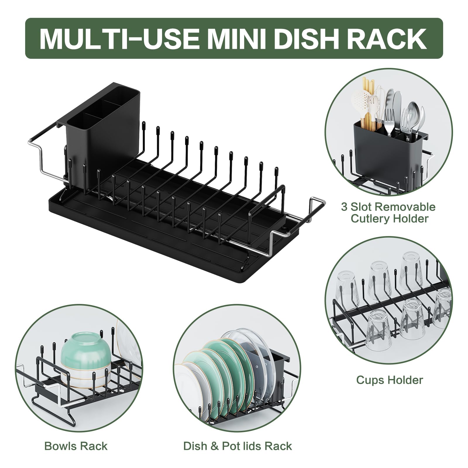 Genial platzsparend! Dieses Abtropfgestell von Aufworld passt sich deiner Spüle an - von 35,5cm bis 48,8cm ausziehbar. Mit praktischer Silikon-Matte, die Tropfwasser auffängt. Der abnehmbare Besteckkasten mit 3 Fächern sorgt für Ordnung. Kann auf der Arbeitsplatte, in der Spüle oder über der Spüle verwendet werden. Aus rostfreiem Stahl, robust und langlebig. Perfekt für kleine Küchen - endlich alles ordentlich trocken!