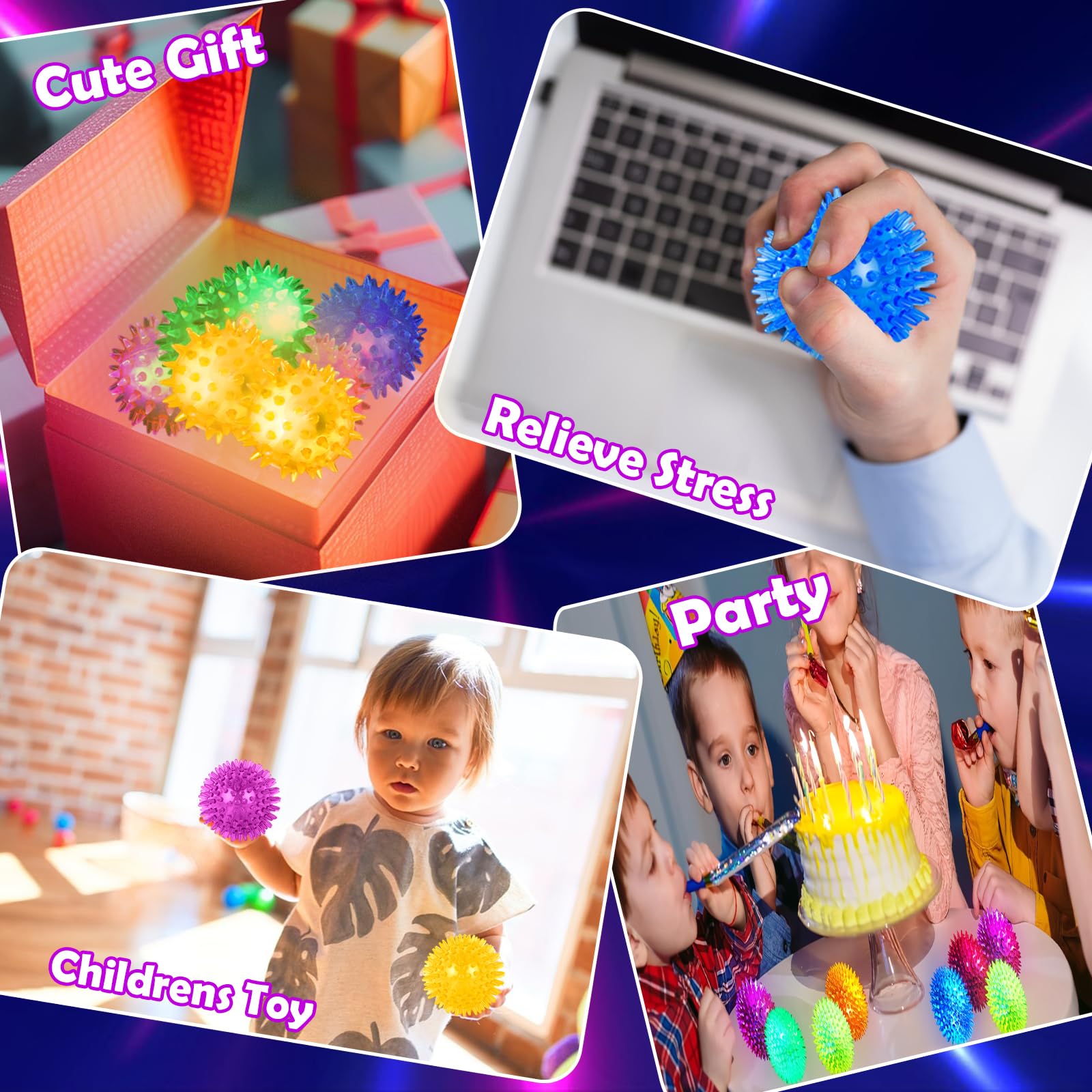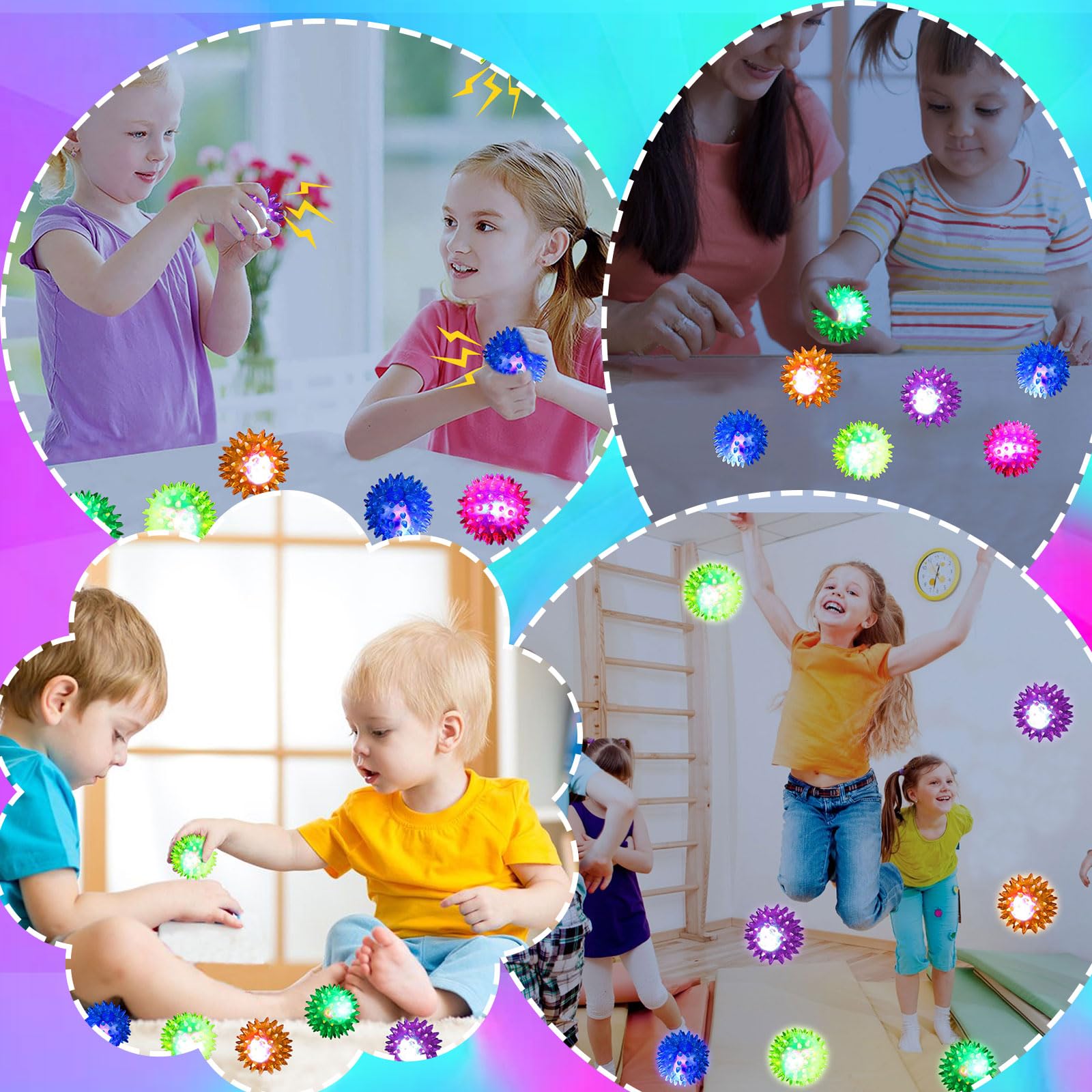 Der Hit auf jeder Kinderparty! Diese 12 bunten LED-Igelbälle bringen Augen zum Leuchten und sorgen für stundenlangen Spielspaß. Einfach werfen, fangen oder gegen Wände springen lassen - und schon erleuchten sie in bunten Farben!\\n\\n• Inhalt: 12 Igelbälle in 6 verschiedenen Farben\\n• Durchmesser: 5,5 cm - perfekt für Kinderhände\\n• Material: Weicher TPR-Gummi - sicher und langlebig\\n• Aktivierung: Durch Aufprall - leuchtet 10-15 Sekunden\\n\\nWie funktionieren sie? Ganz einfach: Die Bälle leuchten auf, sobald sie auf eine harte Oberfläche treffen. Perfekt für Nachtspiele, Discos im Kinderzimmer oder als cooles Mitgebsel. Die weichen Stacheln sind angenehm in der Hand und können sogar zur Handmassage verwendet werden.\\n\\nIdeal für:\\n• Kindergeburtstage als Mitgebsel\\n• Schul- und Kindergartenfeste\\n• Sommerpartys im Garten\\n• Nachtwanderungen und Camping\\n• Als Belohnung oder kleine Überraschung\\n\\nDie Bälle sind robust, wasserfest und die LEDs halten lange. Einfach auspacken und sofort spielen - keine Batterien needed! Perfekt als Geschenk, für die Tombola oder einfach als bunte Überraschung für zwischendurch.