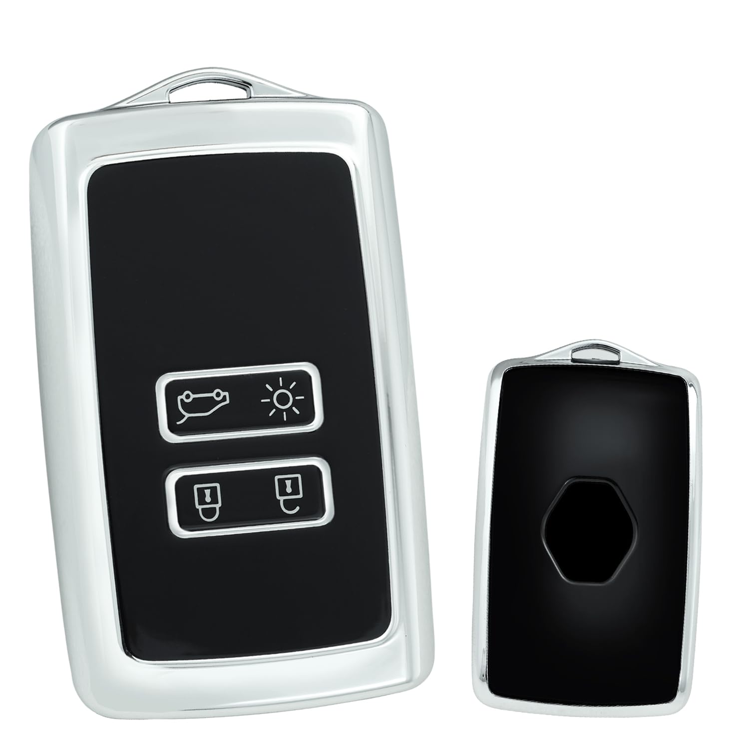Renault-Fahrer, schützt eure Autoschlüssel mit diesem praktischen 2er-Set Silikon-Hüllen! Speziell passend für Renault Modelle wie Clio, Megane, Koleos, Kadjar, Kangoo, Twingo, Talisman, Captur, Espace und Dacia Duster. Die weiche TPU-Silikonhülle schützt zuverlässig vor Stößen, Kratzern und Wasser, während alle 4 Tasten des Schlüssels weiterhin gut erreichbar sind. Das coole blaue Liniendesign und das Renault-Logo auf der Rückseite sehen einfach stylisch aus. Im Lieferumfang enthalten: 2 Silikon-Hüllen plus 1 geflochtener Leder-Schlüsselanhänger für noch mehr Komfort. Kompakt und leicht passt die Hülle perfekt in jede Tasche oder an den Schlüsselbund. Einfach den originalen Schlüssel in die Hülle stecken - schon ist euer wertvoller Autoschlüssel optimal geschützt. Nie wieder Angst vor versehentlichen Stürzen oder Beschädigungen!