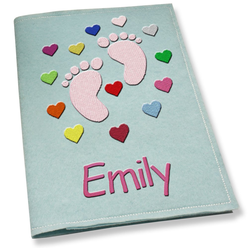 Die langweilige Plastikhülle fürs U-Heft war gestern! Diese süße bestickte Hülle macht jeden Arztbesuch bunter. Mit dem Motiv Babyfüße in blau und bunten Sternen - einfach niedlich! Wir sticken dir kostenlos den Namen und Geburtsdatum deines Kindes drauf - eine super persönliche Note. Im Inneren ist eine Tasche für den Impfpass - alles an einem Ort. Aus 100% Polyester und mit hochwertigem Polyestergarn bestickt - waschbar bis 95°C und absolut farbecht. Passt perfekt für das deutsche U-Heft im DIN A5 Format. Ein ideales Geschenk zur Geburt, Taufe oder zum ersten Geburtstag! Mach der jungen Familie eine Freude - praktisch und hübsch zugleich. Bestell einfach mit dem gewünschten Namen - wir kümmern uns um den Rest!