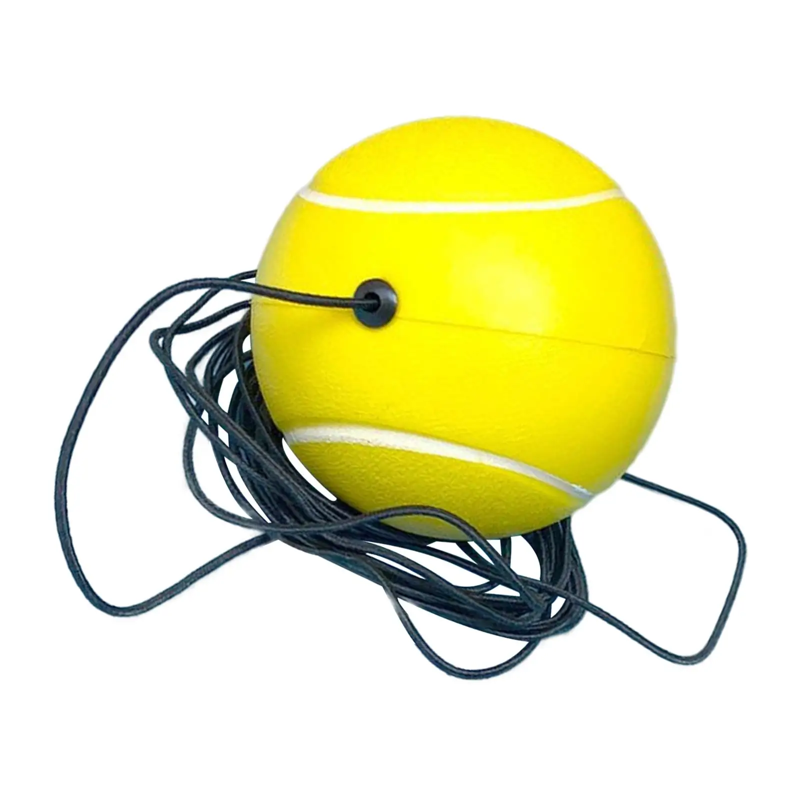 Hey Tennis-Fans, mit diesen Tennisbällen mit Schnur kannst du endlich alleine trainieren! Du bekommst 3 Bälle - immer Ersatz parat! Jeder Ball hat ein 3,8 Meter langes schwarzes Gummiseil - reicht vollkommen aus! Einfach ein Ende am Tennis Trainer befestigen, das andere am Schläger oder Boden - schon kann's losgehen! Kein lästiges Bälle sammeln mehr - du konzentrierst dich ganz auf dein Spiel! Der Ball hat einen Hartgummikern und eine Filzaußenschicht - fühlt sich fast wie ein richtiger Tennisball an! Leuchtend gelb - auch bei schlechtem Licht gut sichtbar! Springt bis zu 1,35 Meter hoch - perfekt für realistische Übungen! Ideal für Anfänger um die Hand-Auge-Koordination zu verbessern, aber auch Profis können damit Techniken verfeinern! Egal ob drinnen oder draußen - überall einsetzbar! Für alle Altersgruppen - Schüler, Büroangestellte, Senioren! Leicht und tragbar - einfach mitnehmen und überall trainieren! Einfach ein geniales Tool für jeden der sein Tennis-Spiel verbessern will!