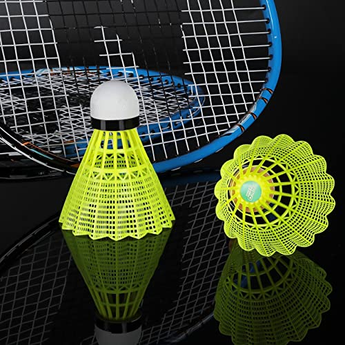 Perfekte Badmintonbälle für Training und Freizeit! Dieses Set enthält 12 gelbe Nylon-Bälle, die extra für Hobby-Spieler, Anfänger und Familien entwickelt wurden. Im Gegensatz zu echten Federbällen sind diese aus robustem Nylon gefertigt - viel langlebiger und widerstandsfähiger gegen Abnutzung. Der Ballkopf besteht aus einem Verbundkork, der für schnelle Schüsse und einen gleichmäßigen Flug sorgt. Mit nur 5g pro Ball sind sie super leicht und einfach zu kontrollieren - ideal also für Einsteiger oder Gelegenheitsspieler. Die knallige gelbe Farbe bietet gute Sichtbarkeit, selbst bei Dämmerlicht oder abends - so macht das Spielen auch bei nicht-perfekten Lichtverhältnissen Spaß! Verpackt in einer praktischen Tube, die die Bälle während des Transports schützt und sie leicht entnehmbar macht. Auch wenn sie nicht für offizielle Wettkämpfe geeignet sind, sind sie perfekt für den Schulport, Familienfeiern, Gartenpartys oder einfach für ein spontanes Spiel im Park. Die Flugeigenschaften sind wirklich gut - stabil und vorhersehbar, genau das, was man für ein unterhaltsames Spiel braucht. Einfach den Deckel aufdrehen, einen Ball rausnehmen und losspielen! Mit 12 Bällen im Set hast du außerdem genug Ersatz, falls mal einer kaputt geht oder verloren wird. Einfach ein tolles Preis-Leistungs-Verhältnis für alle Badminton-Begeisterten!