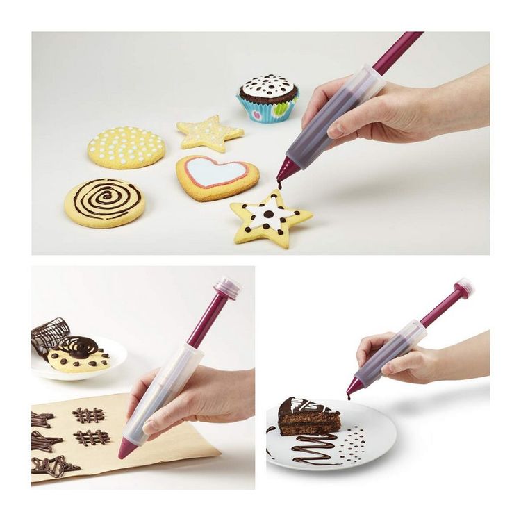 Für alle, die gerne backen: Dieser Dekorierstift macht Verzieren zum Kinderspiel! Aus hochwertigem Silikon, mit praktischem Aufbewahrungsfach für 2 Tüllen. Perfekt für filigrane Verzierungen auf Kuchen, Muffins, Torten oder am Tellerrand. Einfach mit Zuckerguss oder Schokolade füllen und losdekorieren. Macht selbst einfache Desserts zum Hingucker. Ideal für Hobby-Bäcker und Profis. Sauber, präzise und wiederverwendbar. Wenn du deine Kreationen aufpeppen willst, ist das Ding ein Muss!