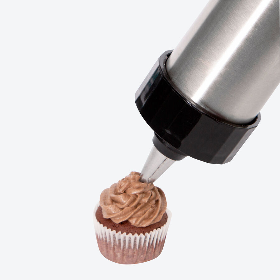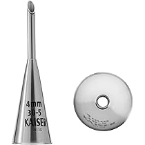 Perfekt für deine Kaiser Creme- und Gebäckpresse! Diese 3 Adapterscheiben aus rostfreiem Edelstahl passen auf alle Tüllengrößen und machen das Dekorieren zum Kinderspiel. Egal ob Torten, Cupcakes oder Waffeln - mit diesem Profi-Zubehör gelingen dir kunstvolle Verzierungen mit Marzipan, Sahne oder Fondant im Handumdrehen!\n\nDie Adapter verbinden die Tüllen sicher mit dem Spritzbeutel durch ein praktisches Schraubsystem - so geht garantiert nichts daneben! Alle Teile sind spülmaschinenfest und super easy zu reinigen.\n\nKaiser steht seit über 90 Jahren für Qualität aus Deutschland! Made in Diez/Lahn - da weißt du, was du kriegst. Hol dir diese praktischen Adapterscheiben und werde zum Back-Profi! Einfach auf die Tülle schrauben, Beutel befestigen und loslegen!