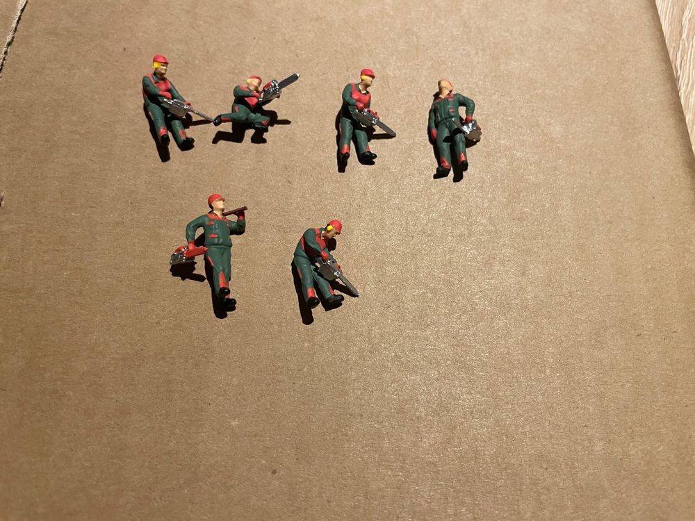 Wow, diese Holzfäller-Figuren bringen Leben in deine Modellbahn-Landschaft! Die kleinen Kerle sind richtig detailreich gestaltet und einige davon sogar beweglich - da kannst du dir richtig coole Waldszenen ausdenken. Stell dir vor: Einer fällt gerade nen Baum, ein anderer trägt Holz... das sieht mega authentisch aus!