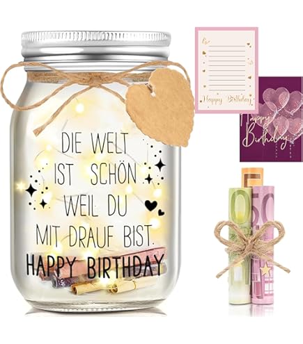 Was für eine geniale Geschenkidee! Diese Glasflasche mit dem Spruch 'KLEINER Wunscherfüller' und LED-Beleuchtung ist perfekt für Geldgeschenke oder persönliche Botschaften. Mit 17,5 cm Höhe bietet sie genug Platz für Geldscheine, Wunschzettel oder kleine Geschenke. Im Lieferumfang sind 20 LED-Lichter, 50 Metallringe, bunte Wunschzettel und eine Juteschnur enthalten - alles für dein DIY-Projekt. Das sanfte Licht schafft eine wunderschöne Atmosphäre. Perfekt für Geburtstage, Weihnachten, Jugendweihe oder einfach so als Überraschung. Damit machst du garantiert jedem eine Freude!