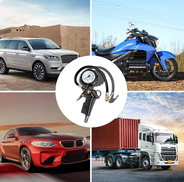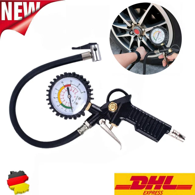 Schluss mit ungenauem Reifendruck! Die YINETTECH Reifenfüllpistole mit geeichtem Manometer zeigt dir genau, was in deinen Reifen passiert. Mit einem Messbereich von 0-200 PSI bzw. 0-15 bar und vier verschiedenen Maßeinheiten (PSI, KPA, Bar, Kgf/c㎡) bist du für alle Fahrzeuge bestens ausgestattet. Im Lieferumfang sind drei verschiedene Anschlüsse für europäische, amerikanische und japanische Fahrzeuge dabei. Perfekt für Familienautos, kleine LKWs, Motorräder und sogar E-Bikes! Das Doppelfuß-Design ermöglicht einfaches Aufpumpen auch bei Doppelachsen. Die gut ablesbare Anzeige macht das Einstellen des richtigen Drucks zum Kinderspiel. Aus Aluminium gefertigt und mit umweltfreundlicher Schutzhülle - langlebig und präzise. Endlich professionelle Reifenwartung für zu Hause!