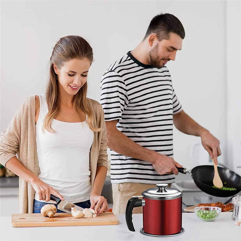 Frittierst du gerne? Dann kennst du das Problem: Wohin mit dem gebrauchten Öl? Dieser Edelstahl-Fettbehälter mit Sieb ist die perfekte Lösung! Einfach das heiße Öl durch das feine Sieb gießen - schon sind alle Speisereste rausgefischt. Der Deckel schützt vor Staub, der Ausguss verhindert Tropfen. Mit 1,4 Litern Fassungsvermögen passt genug Öl für mehrmaliges Frittieren rein. Aus robustem 410er Edelstahl, spülmaschinengeeignet. Super praktisch für alle, die gerne frittieren oder Speck auslassen. Einfach benutzen und sich über ordentliche Küchenhygiene freuen!
