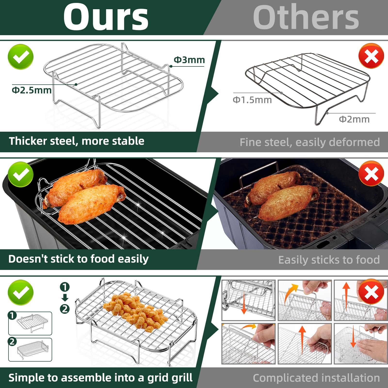 Mach aus deiner Heißluftfritteuse eine echte Multifunktions-Küchenmaschine! Dieses geniale Zubehör-Set besteht aus einem doppelstöckigen Spieß und Backblech aus hochwertigem 304 Edelstahl. Das bedeutet: Du kannst viel mehr Essen auf einmal zubereiten - super praktisch wenn Besuch kommt oder die Familie hungrig ist. Der Edelstahl ist rostfrei, sicher und super langlebig. Die Antihaft-Beschichtung macht das Reinigen zum Kinderspiel und ist spülmaschinenfest. Passt perfekt zu Philips Airfryer Modellen wie HD9225, HD9920, HD9231 und vielen mehr. Aber das ist noch nicht alles: Du kannst das Set auch für deinen Grill oder Bräter im Freien verwenden! Ob Fleischspieße, Gemüse, Snacks oder Backwaren - mit diesem Zubehör wird deine Heißluftfritteuse noch vielseitiger. Einfach einsetzen und dich über knusprige, fettarme Leckereien freuen. Gesund kochen war noch nie so einfach!