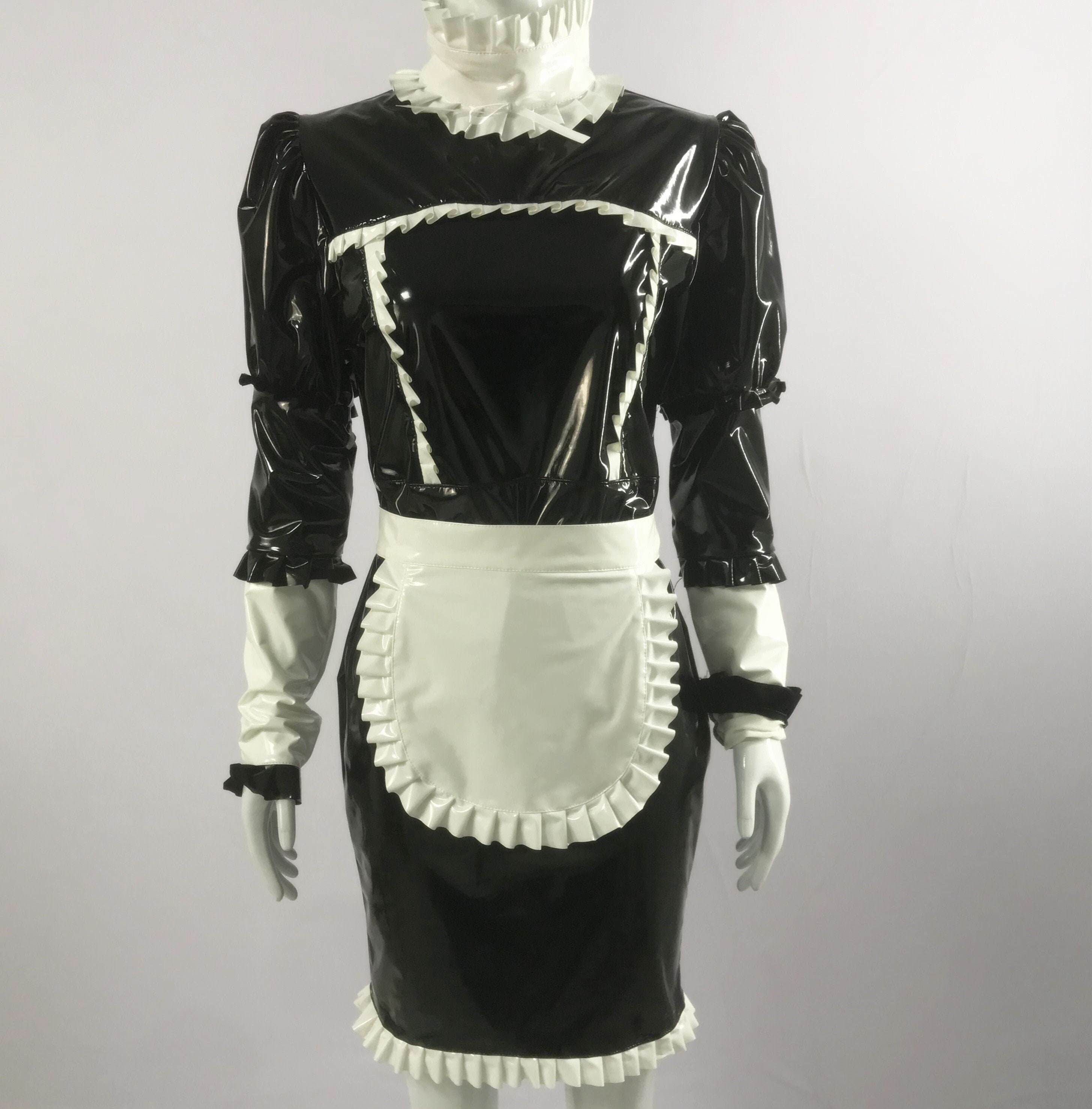 Bereit für den nächsten Cosplay-Abend? Dieses French Maid Kostüm aus PVC ist ein echter Hingucker! Mit langen Puffärmeln, Rollkragen und Schürze sieht es einfach authentisch aus.