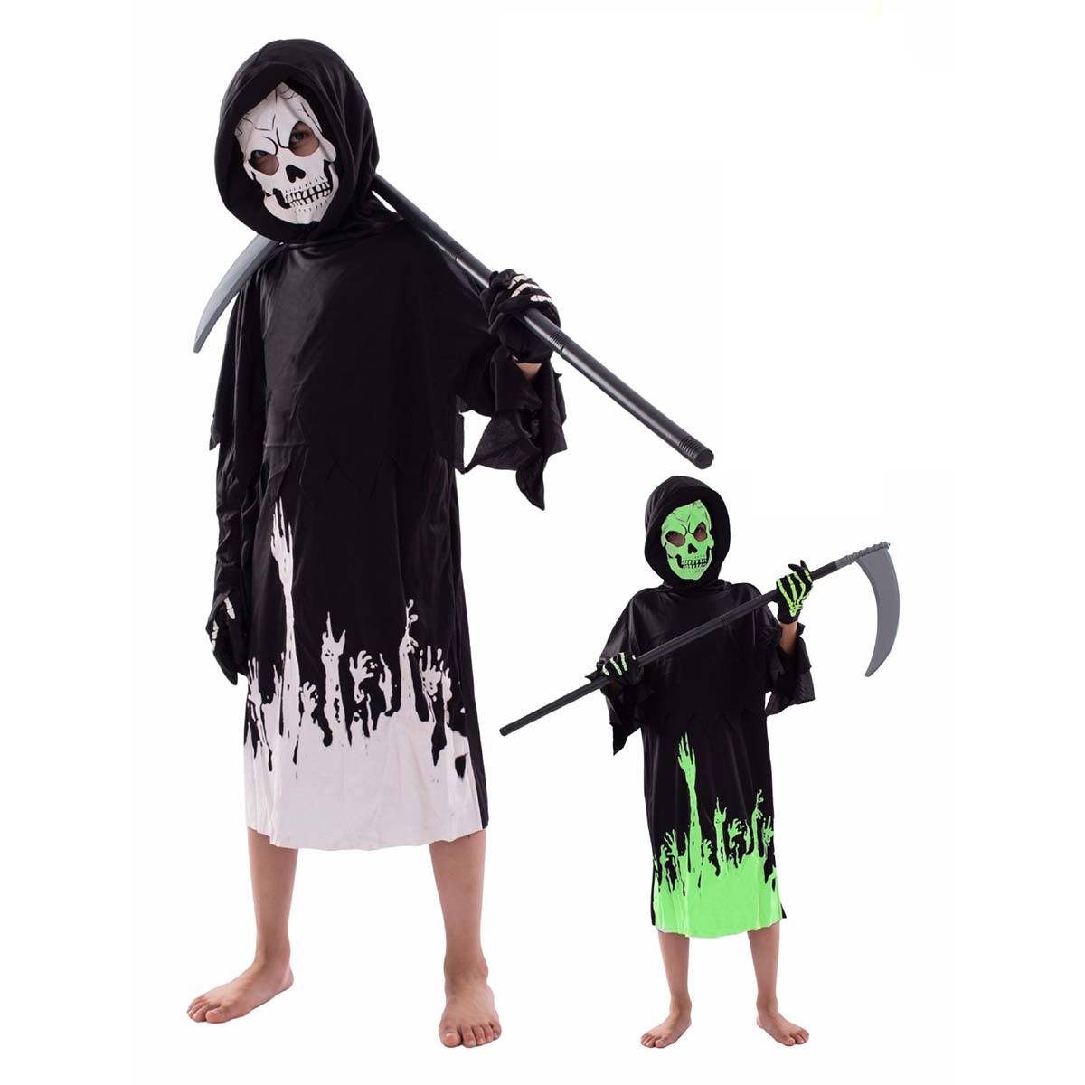 Boah, das Sensenmann Kostüm ist ja mal richtig gruselig-cool! Dein Kind wird der Hit auf jeder Halloween-Party sein. Das Set hat alles was das Gruselherz begehrt: Overall, Maske, Handschuhe und sogar fluoreszierende Tattoos! Und das Beste: Das ganze Zeug leuchtet im Dunkeln! Nachdem es Licht gesammelt hat, strahlt es richtig hell - voll der Hingucker. Die Sense ist aus leichtem Kunststoff, also ungefährlich aber sieht trotzdem echt aus. Die Latex-Maske ist weich und riecht nicht - super für Kinderhaut. Mit Netz in den Augen - da sieht dein Kind alles aber wird nicht erkannt. Größen von 5-14 Jahren, also für fast jedes Alter. Lockere Passform - passt auch über dicke Jacken. Und die Qualität? Top! Weicher Polyester, dehnbar und atmungsaktiv. Doppelte Nähte damit nix reißt. Als Geschenk für kleine Gruselfans? Absoluter Mega-Treffer! Nicht nur für Halloween, auch für Karneval oder Mottopartys super. Da sind die anderen Kinder aber neidisch!