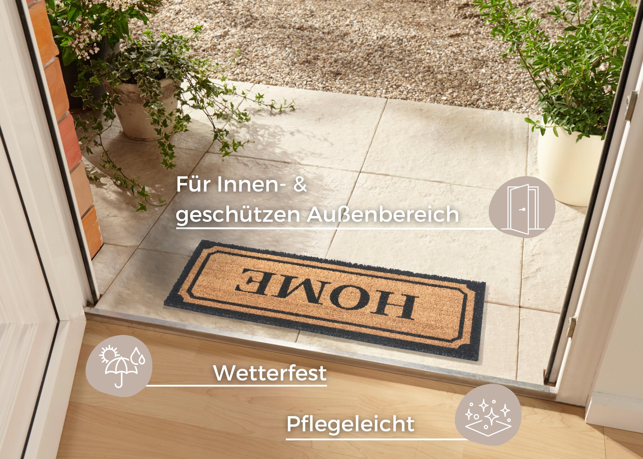Der beste Schutz gegen Dreck in deinem Zuhause! Diese schmale Kokos-Fußmatte von Hanse Home fängt zuverlässig Schmutz und Feuchtigkeit ab. Mit den Maßen 27x70cm perfekt für schmale Eingangsbereiche, Flure oder Terrassentüren. Die natürlichen Kokosborsten nehmen Feuchtigkeit super auf und bieten Bakterien keine Nährstoffe - bleibt also hygienisch sauber! Die rutschfeste Latex-Unterseite gibt sicheren Halt auf allen Böden. Sowohl für Innen als auch Außen geeignet, absolut wetterfest und strapazierfähig. Einfach zu reinigen: regelmäßig absaugen, ausklopfen oder mit sanften Reinigungsmitteln säubern. Die natürliche Optik passt zu jedem Einrichtungsstil und sorgt für eine einladende Atmosphäre. Ein echter Allrounder für Haus, Wohnung oder Terrasse - damit bleibt dein Boden garantiert sauberer!