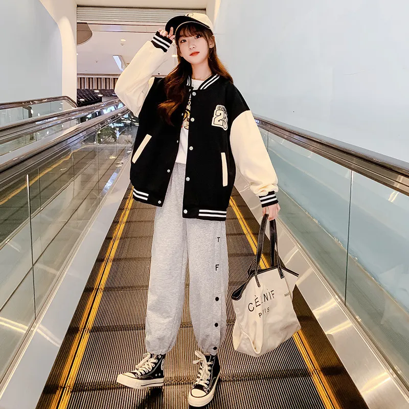 Suchst du eine coole Jacke für deine Tochter? Diese Baseball-Jacke im lässigen College-Style ist genau das Richtige! Aus weicher Baumwolle gefertigt, fühlt sie sich super angenehm auf der Haut an und wärmt perfekt in der Übergangszeit. Mit den praktischen Druckknöpfen geht das An- und Ausziehen ratzfatz, und der Schnitt ist locker genug, dass noch ein Pulli drunter passt. Ob für die Schule, zum Spielen oder einfach nur für gemütliche Tage zu Hause - diese Jacke wird schnell zum Lieblingsstück! Die Farbauswahl ist klasse, und das Design ist zeitlos cool. Von Größe 86 bis 176 ist für jedes Alter was dabei - vom Kindergarten bis zur Teenagerzeit. Einfach mal anprobieren und sehen, wie gut sie steht! Besonders praktisch: Sie ist nicht zu dick, also perfekt für Frühling und Herbst, wenn's mal nicht so heiß ist. Wenn deine Kleine also was Lässiges sucht, das trotzdem warm hält - hier ist sie goldrichtig!