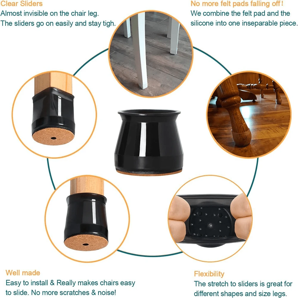 Schluss mit Kratzern und nervigen Geräuschen! Diese 10 Stuhlbeinschoner sind die Rettung für deine Böden. Einfach über die Rollen deines Bürostuhls stülpen - kein Werkzeug nötig! Das TPE-Material mit Filzauflage schützt Holzböden, Fliesen und Teppiche gleichermaßen. Dein Stuhl gleitet leise und sanft darüber, ohne Spuren zu hinterlassen. Perfekt fürs Homeoffice, Großraumbüro oder Konferenzräume. Die Schoner passen für Rollen mit 4,5-5,5 cm Durchmesser und rutschen nicht ab. Neben dem praktischen Nutzen sehen sie auch noch gut aus - dein Büro wirkt gleich aufgeräumter. Einfache Lösung, großer Effekt! Deine Nachbarn unter dir werden sich freuen und deine Böden bleiben makellos. Einfach mal ausprobieren - du wirst erstaunt sein, wie viel ruhiger es plötzlich ist!