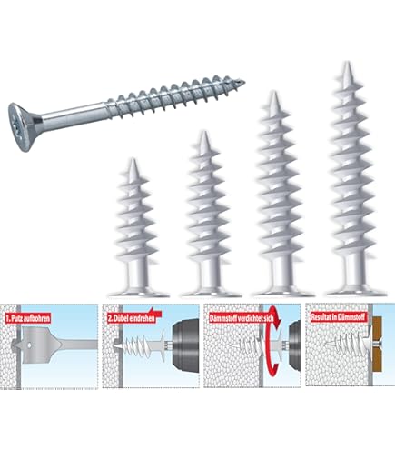 Tipp: Vor dem Kauf Dämmstoffdicke checken! Für 85 mm ideal - bei anderen Stärken andere Länge wählen! Einfach ein Qualitätsprodukt für dauerhafte Befestigungen!