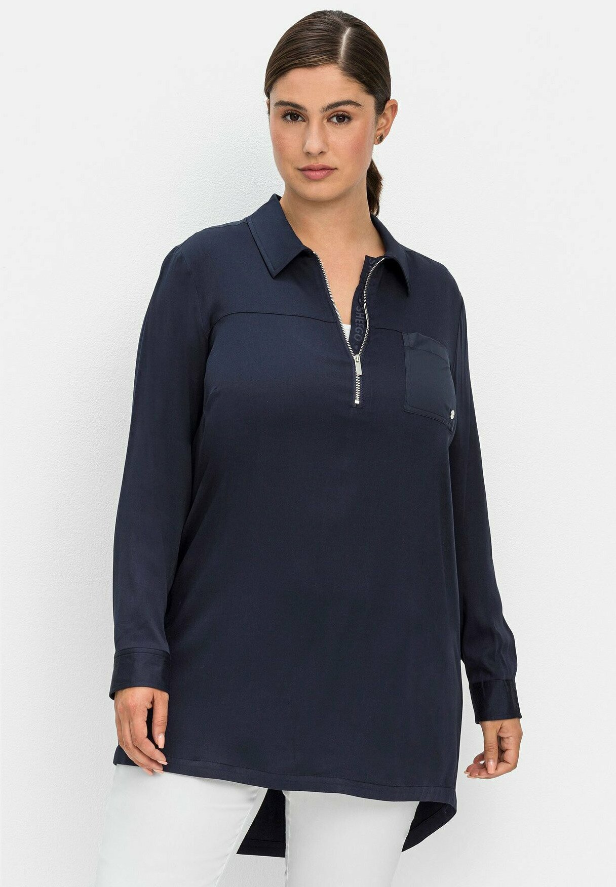 Entdecke die perfekte Passform für deine Kurven! Diese wunderschöne Long-Tunika von Sheego wurde speziell für üppige Figuren ab Größe 40 designed. Das grün-weiße Muster ist trendbewusst und vielseitig kombinierbar. Der lange Schnitt bietet optimalen Komfort und bedeckt problemlos die Hüften. Perfekt für entspannte Tage, aber auch elegant genug für festliche Anlässe wie Partys oder Cocktails. Sheego steht für Body Positivity und zeigt, dass Stil keine Frage der Kleidergröße ist. Hochwertige Materialien und durchdachte Schnittführung sorgen dafür, dass du dich wohl und selbstbewusst fühlst. Ein Must-Have für jede Curvy-Garderobe - weil du es verdient hast, dich großartig zu fühlen!