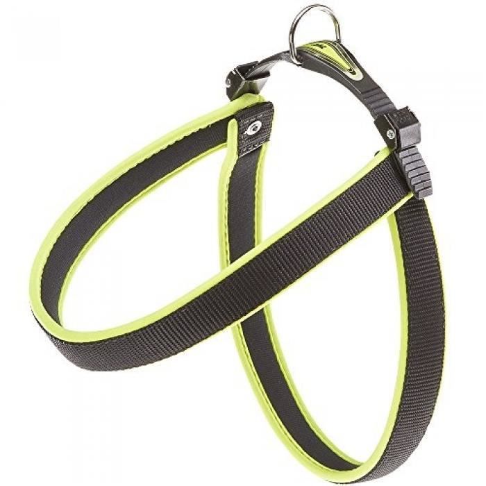 Hey, suchst du ein richtig bequemes Geschirr für deinen Hund? Das Ferplast AGILA Fluo ist mega praktisch! In knalligem Neongrün - da siehst du deinen Vierbeiner auch bei Dunkelheit gut. Passt für Hunde mit Brustumfang von 57 bis 65 cm, also für viele mittelgroße Rassen.\n\nWas richtig cool ist: Das doppelte Mikroregulations-System! Du kannst das Geschirr millimetergenau einstellen, sitzt perfekt und drückt nirgends. Und die weiche Polsterung sorgt dafür, dass nichts scheuert - selbst bei langen Spaziergängen.\n\nDas Geschirr verteilt den Zug super auf die Brust, was viel gesünder ist als ein Halsband. Dein Hund zieht nicht gegen den Hals, sondern gegen die stabile Brustpartie. Richtig durchdacht!\n\nFerplast ist ja ne bekannte Marke - die wissen, was sie tun. Das Nylon-Material ist robust, aber trotzdem angenehm weich. Und das neon-grün leuchtet richtig gut, plus reflektierende Elemente für mehr Sicherheit.\n\nEinfach anziehen, perfekt einstellen und los geht's! Dein Hund wird's dir danken - versprochen!