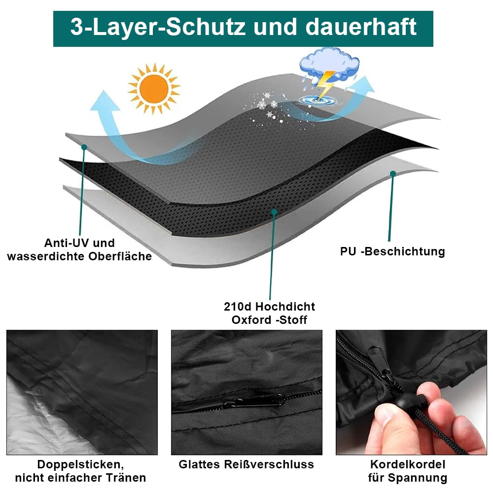 Dein Schirmständer verdient den besten Schutz! Diese quadratische Abdeckung aus robustem 210D Oxford-Gewebe hält Staub, Blätter und Vogelkot fern. Mit praktischem Reißverschluss für einfaches An- und Ablegen. Die elastischen Kordeln an den Ecken sorgen für sicheren Halt auch bei windigem Wetter. Perfekt für Garten, Terrasse, Strand oder Hinterhof. Schützt deinen Schirmständer vor Witterungseinflüssen und verlängert so seine Lebensdauer. Einfach über den Ständer stülpen, Reißverschluss schließen - und schon ist er optimal geschützt!