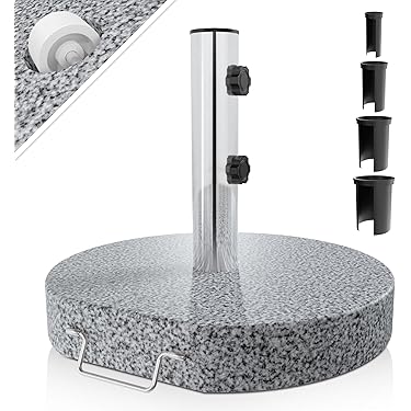 Boah, dieser Sonnenschirmständer aus Granit ist ein echter Brocken - mit stolzen 25kg Gewicht hält er deinen Schirm sicher an Ort und Stelle! Die eckige Form in den Maßen 45x35cm bei 7,4cm Dicke sieht nicht nur edel aus, sondern bietet auch maximale Stabilität. Perfekt für Schirme bis zu 350cm Durchmesser und Schirmstöcke von 37mm bis 47mm Stärke. Das Edelstahlrohr mit zwei Feststellschrauben sorgt dafür, dass dein Schirm nicht verrutscht oder umkippt - selbst bei stärkerem Wind. Aus hochwertigem Granit und Edelstahl gefertigt, ist dieser Ständer absolut wetterfest und langlebig. Einfach den Schirmstiel in das Edelstahlrohr stecken, mit den Feststellschrauben fixieren und du kannst deinen Garten, deine Terrasse oder deinen Balkon in vollen Zügen genießen. Ohne lästiges Umkippen oder Verrutschen - einfach aufstellen und entspannen!