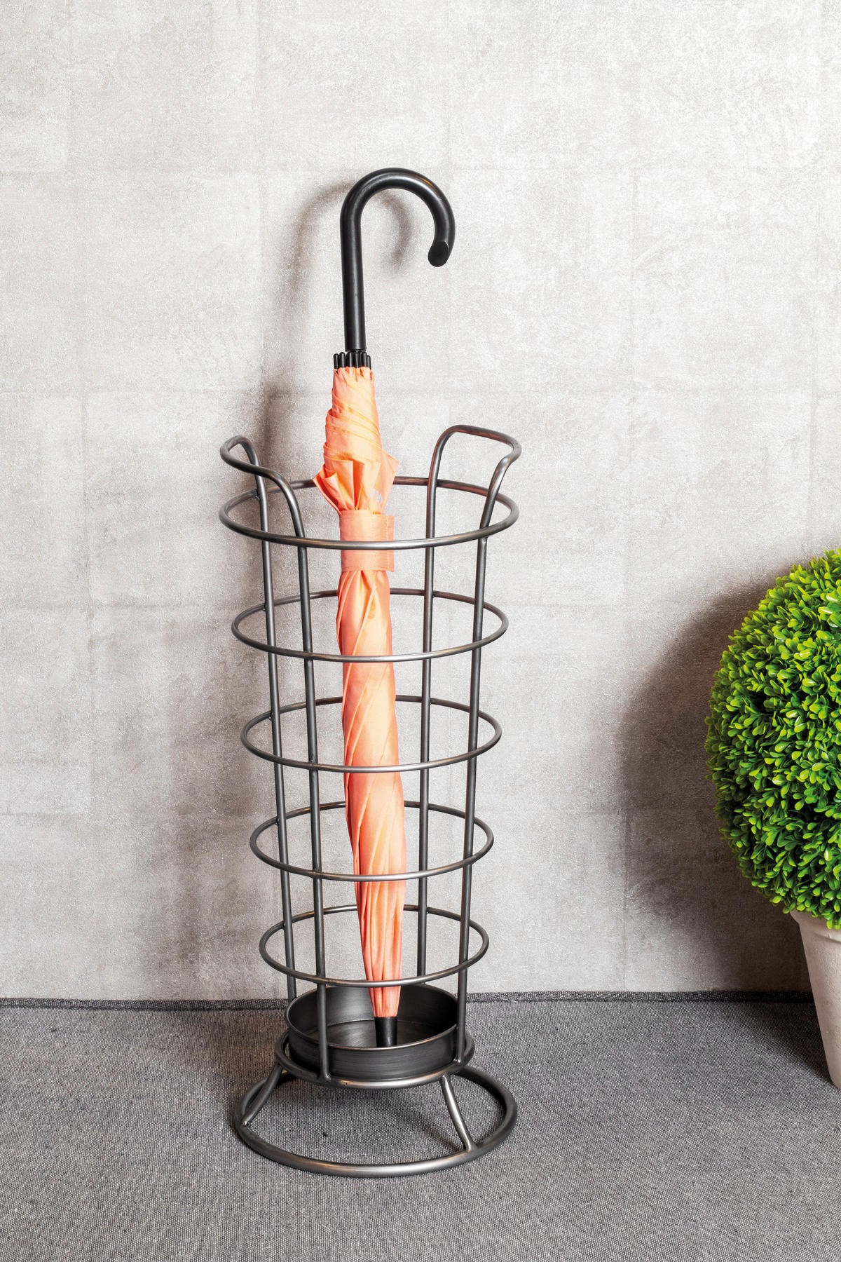 Endlich Ordnung für nasse Regenschirme! Dieser elegante Schirmständer aus Metall ist nicht nur praktisch, sondern sieht auch noch super stylisch aus. Das hohle Muster-Design ist nicht nur dekorativ, sondern lässt das Wasser super ablaufen - die Schirme trocknen schneller und es bilden sich keine Pfützen.\n\nMit einer hochwertigen Pulverbeschichtung ist der Ständer wasser- und rostbeständig - perfekt für den Eingangsbereich, wo ja oft nasse Schirme abgestellt werden. Das robuste Metall gibt genug Standfestigkeit, damit nichts umkippt.\n\nSuper kompakt aber dennoch geräumig genug für mehrere Schirme. Passt super in den Flur, ins Büro oder sogar ins Hotel. Und er ist vielseitig: Nicht nur für Regenschirme, sondern auch für Gehstöcke und Spazierstöcke geeignet.\n\nMach Schluss mit umherstehenden nassen Schirmen! Dieser Ständer bringt Ordnung und Stil in deinen Eingangsbereich - praktisch, langlebig und einfach schön anzusehen.