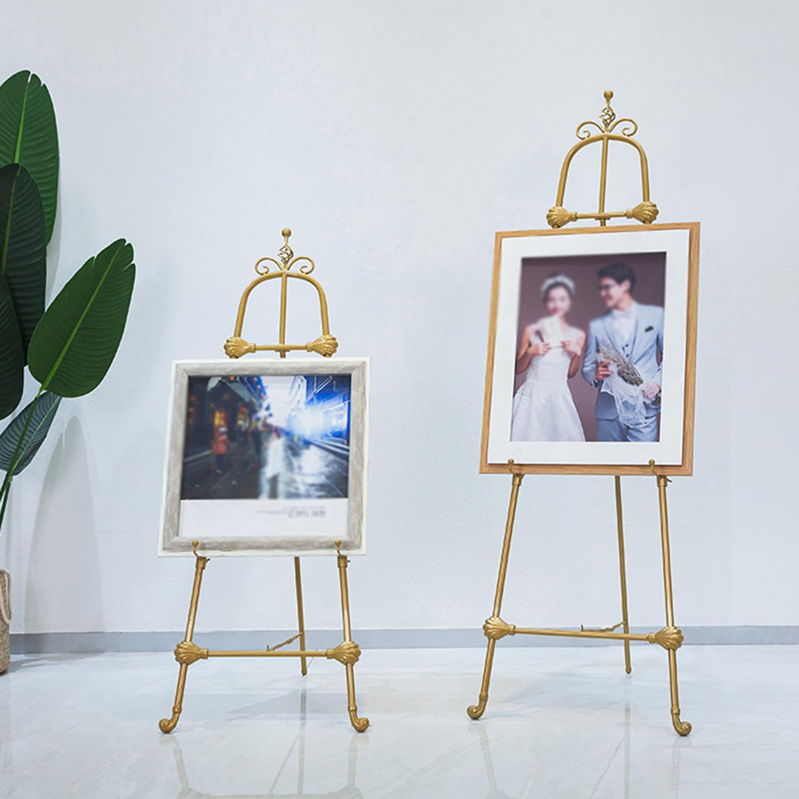 Elegante goldene Staffelei für deine Deko! 145cm hoch und 4-fach höhenverstellbar. Trägt bis zu 45kg - super stabil. Aus robustem Metall mit schickem Gold-Finish. Perfekt für Hochzeitsschilder, Willkommensschilder, Kunstwerke oder Poster. Mit praktischer Aufbewahrungstasche - leicht zu transportieren und zu lagern. Nur 1,1kg schwer - trotzdem mega standfest. Einfach zusammenzubauen. Die Acryl-Komponenten ergänzen das Metall perfekt. Ob im Quer- oder Hochformat - deine Schilder und Bilder kommen super zur Geltung. Mach deine nächste Feier noch festlicher! Stell dir vor, wie edel das Hochzeitsschild darauf aussieht. Oder deine Lieblingskunstwerke im Wohnzimmer. Auch für Messen oder Ausstellungen super geeignet. Einfach das Display der Wahl auflegen und bewundern! Die Staffelei ist stapelbar - wenn du mehrere hast, brauchen sie kaum Stellplatz. Ein echter Hingucker, der jedes Arrangement aufwertet.
