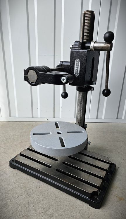 Alter, dieser WABECO Bohrständer ist ja mal ne echte Profi-Maschine! Komplett made in Germany und mit 15 kg Gewicht richtig stabil. Die Stahlsäule ist 500 mm hoch, der Ausleger 500 mm lang - da passt ne Menge drunter. Das coole: Du hast zwei Zustellachsen - vertikal fürs Bohren (Z-Achse) und horizontal fürs Fräsen (Y-Achse). Der Aufspanntisch ist aus Grauguss, hat 4 T-Nuten und ist 360° drehbar. Mit dabei ist ein 10-teiliges Spannpratzen-Set für 10 mm T-Nuten - damit spannst du jedes Werkstück bombenfest. Ob Metall, NE-Metalle, Holz oder Kunststoff - damit bearbeitest du alles präzise. Die massive Stahlsäule (35 mm Durchmesser) und der Sechskant-Ausleger (30 mm) geben dir die nötige Stabilität für saubere Arbeiten. Mit Tiefenanschlag, arretierbaren Achsen und Skalenringen arbeitest du genau wie ein Profi. Einfach ne Antriebseinheit mit 43 mm Euronorm drauf und los geht's! Für jede Werkstatt ein Traum!